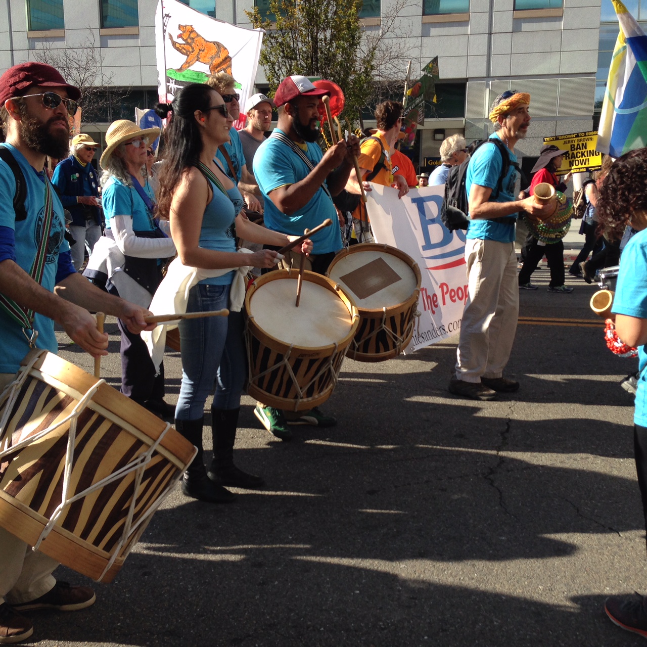 In Oakland, California in a lead-up to the climate talks, activists marched from Lake Merritt to Oscar Grant/Frank Ogawa Plaza. Rallies were held at both ends of the march with speakers and musical performers. Radical marching bands were a big part of this well-attended event.