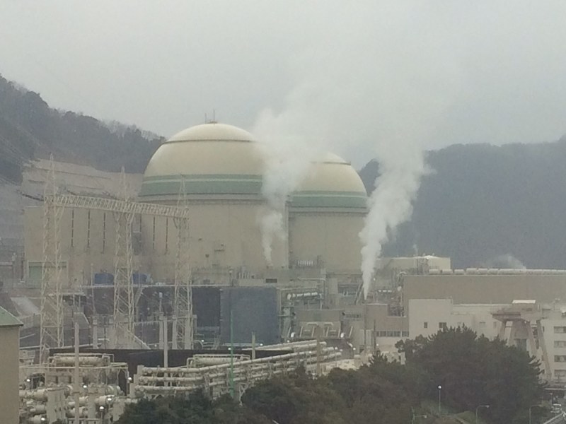 The No. 3 reactor, left, is seen at the Takahama nuclear power plant in Fukui Prefecture on Jan. 29, 2016. (Mainichi)