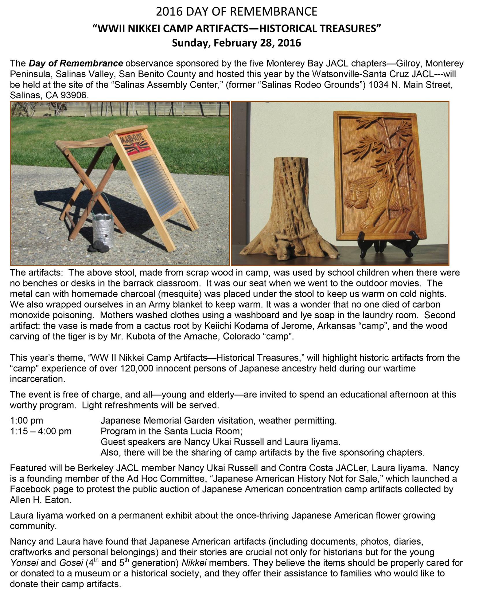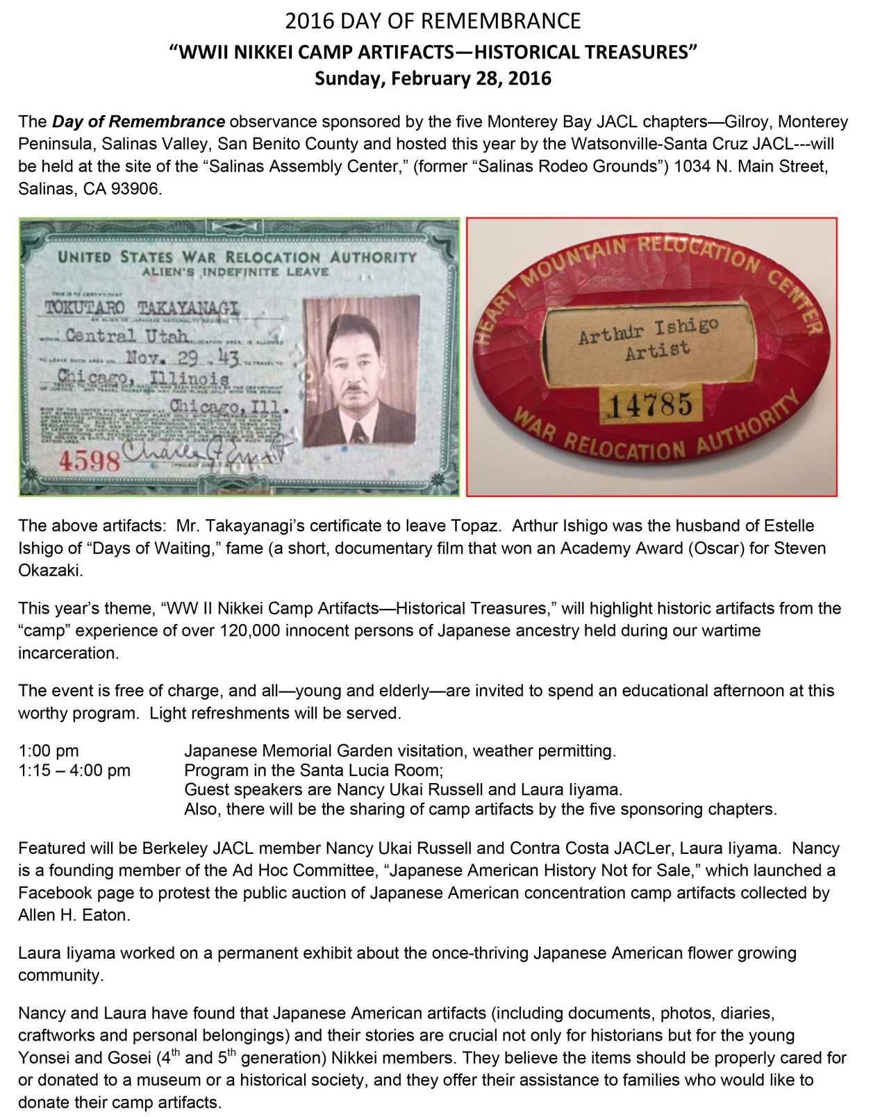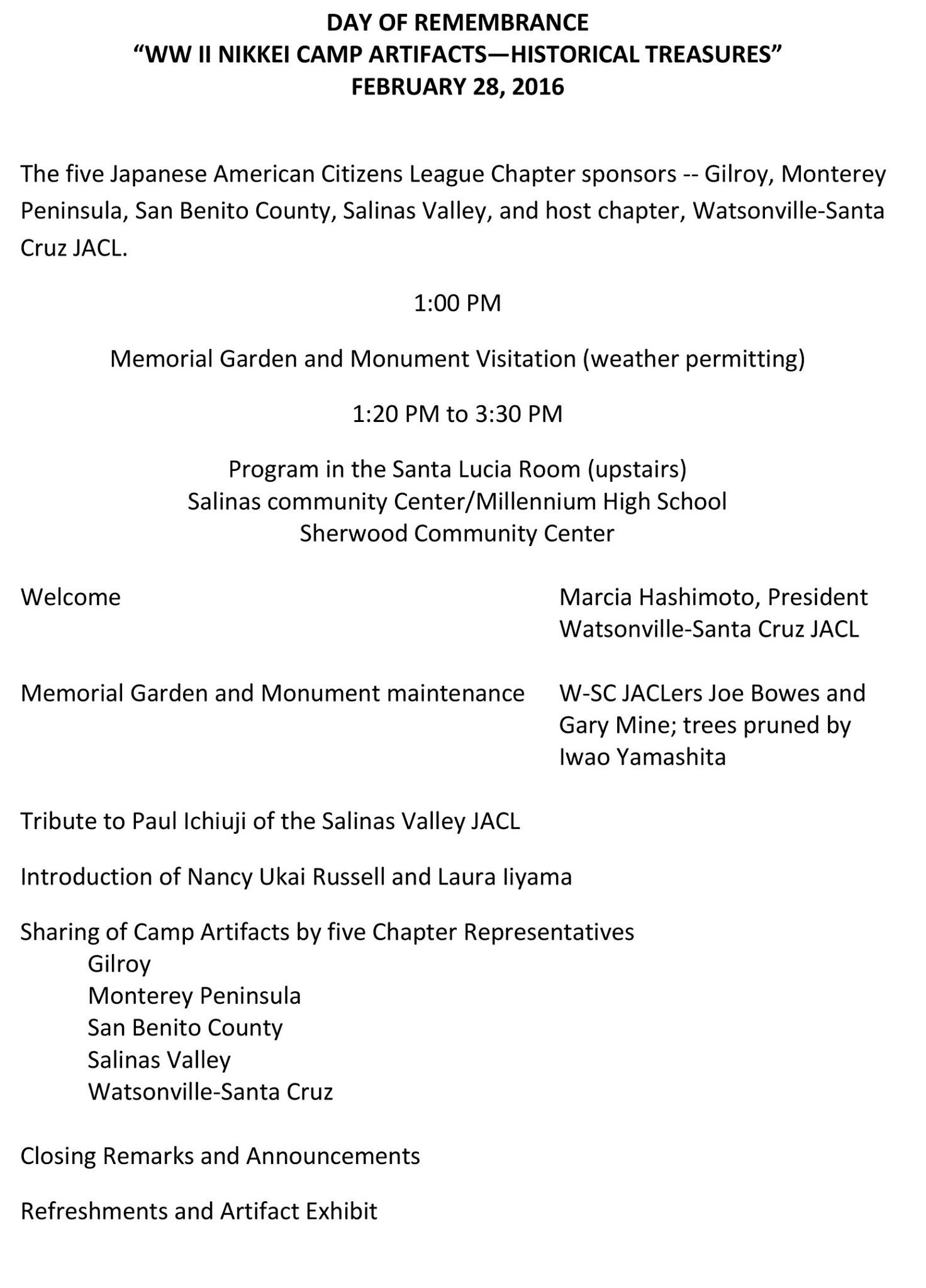 Day of Remembrance event in Salinas hosted by Watsonville-Santa Cruz JACL