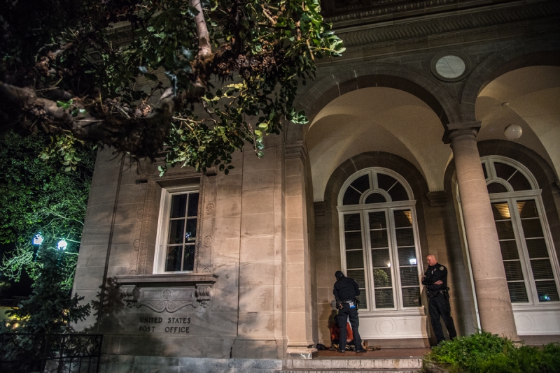At about 11:45pm, SCPD officer Dominique Hohmann and another officer with the department cleared the downtown post office of the homeless people who were sleeping there, citing two individuals. One of the individuals was told by police she was being cited for trespassing. At no time did either of the two officers offer the people they cited at the post office any information on where to find an emergency shelter or how to receive social services.
