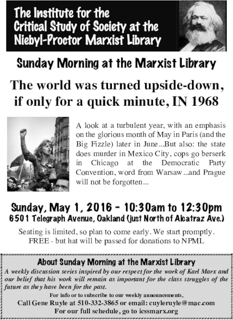 A weekly discussion series inspired by our respect for the work of Karl Marx and our belief that his work will remain as important for the class struggles of the future as they have been for the past.
