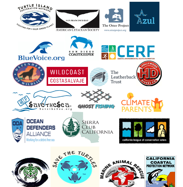 Groups joining today’s joint letter include Turtle Island Restoration Network, the Sierra Club, California League of Conservation Voters, Surfrider, Defenders of Wildlife, American Cetacean Society SF Bay Chapter, Kurmalliance, The Otter Project, BlueVoice.org, Azul, Marine Mammal Rescue, San Diego Coastkeeper, Save the Turtles, Coastal Environmental Rights Foundation, WILDCOAST, The Leatherback Trust, Ocean Defenders Alliance, Ghost Fishing, Save the Sea, Public Interest Coalition, Hollywood Drivers, Environmental Action Committee of West Marin, California Coastal Protection Network, Environment California, Climate Parents, International Marine Mammal Project, Earth Island Institute, Marine Conservation Institute, Oceanic Society, Environmental Defense Center, Los Angelese Underwater Explorers, Whale and Dolphin Conservation, and the Endangered Habitats League.