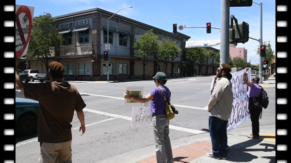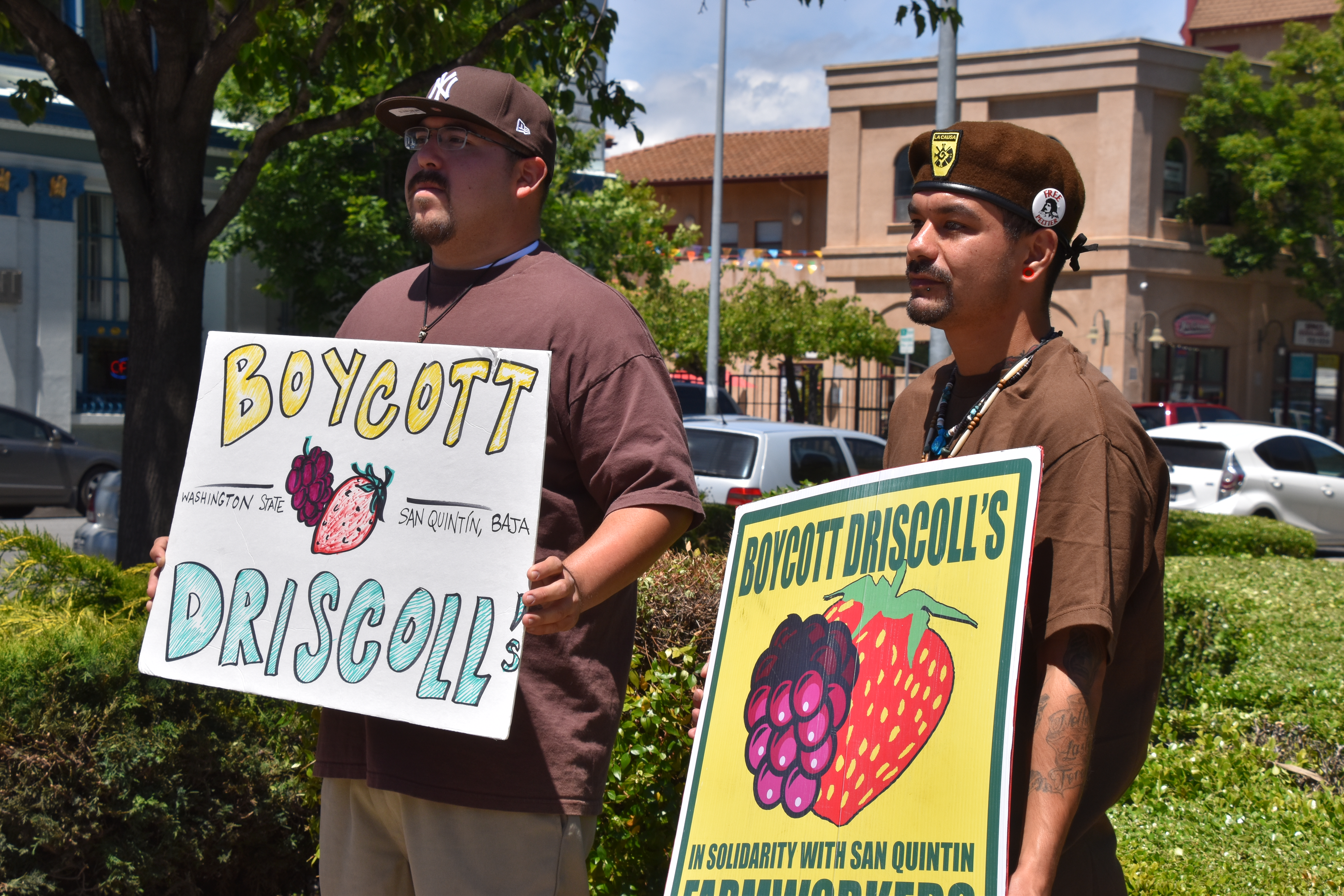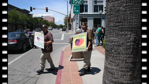 May 14, 2016 a global day of action in solidarity with the farmworkers in San Quintín, Mexico and the farmworkers at Sakuma Bros in Washington State. They are fighting horrific inhumane working conditions that Driscoll's so far has refused to do anything about or even acknowledge. Today the Watsonville Brown Berets and members of the Santa Cruz County Driscoll's Boycott Committee were at the Watsonville Plaza and held a protest on the public sidewalk about these inhumane working conditions and to spread awareness to consumers about the ongoing international boycott of Driscoll's berries. Don't buy Driscoll's berries until union contracts are signed!
