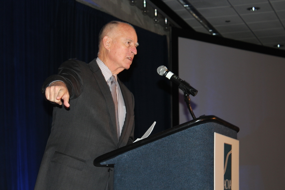 Photo: Governor Jerry Brown speaks at ACWA conference in Sacramento this year. Photo by Dan Bacher.