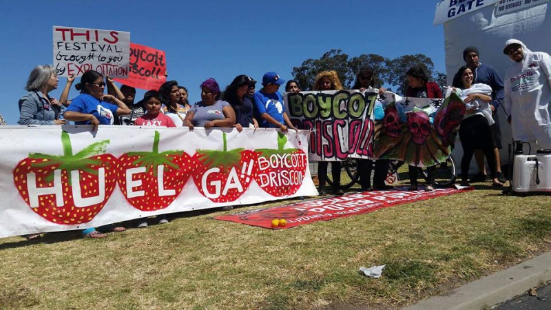 A las afueras del Festival de la fresa en Oxnard, Todo Poder al Pueblo y otros protestan.