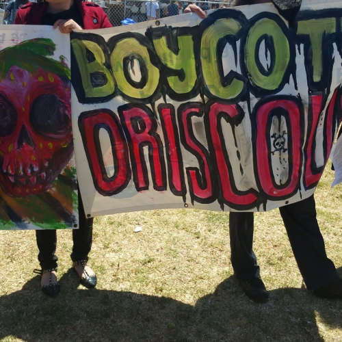 Mientras tanto, el boicot se ha diseminado desde México a Washington, mientras que los “líderes” y grupos desalientan la mención de la resistencia activa en sus eventos pseudo político-culturales solamente si se pide permiso a hablar y protestar y si es aprobado por sus alianzas de corrientes principales de la industria, la ciudad, la policía, y líderes de la comunidad que han sido cooptados. El movimiento de los jornaleros de los años 60’ llenos de nostalgia y la dependencia política de la industria ha impedido intervenciones críticas en explotación, mientras las marchas oficiales se prestan para las cámaras como una falsa política por la lucha de los jornaleros y las jornaleras.