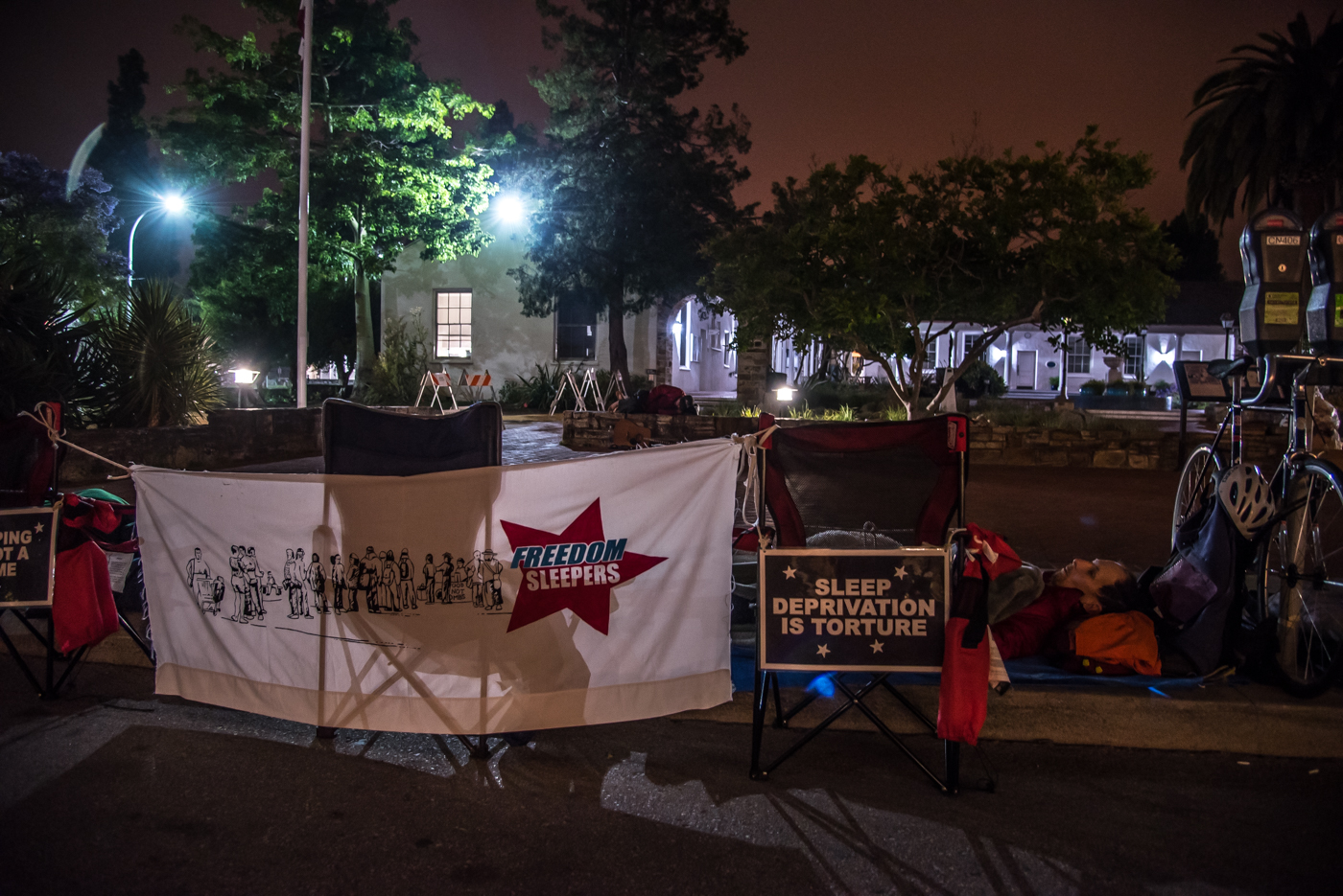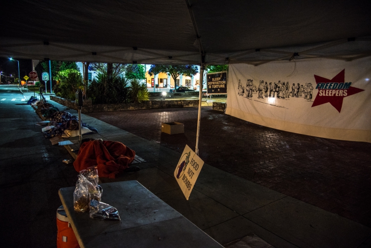 The community sleepouts in Santa Cruz were initiated on July 4, 2015 by a coalition of unhoused and housed activists. Organizations participating in the sleep protests have included Santa Cruz Food Not Bombs, Homeless United for Friendship and Freedom (HUFF), Santa Cruz Homeless Persons Legal Assistance Project, Santa Cruz Homeless Depot Shelter, Homeless Advocacy & Action Coalition, and Housing NOW Santa Cruz.
