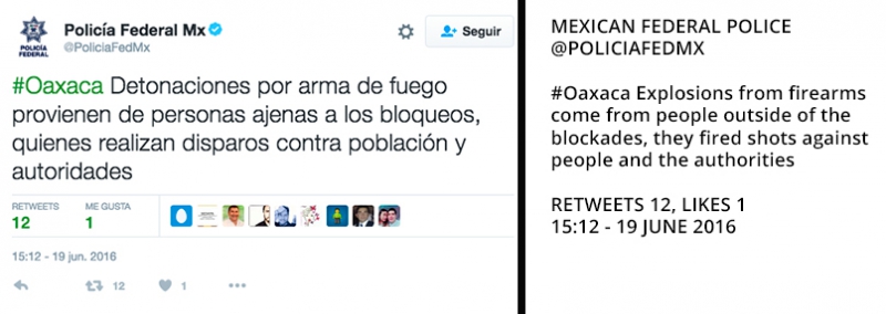 Various state department officials published statements on their respective twitter accounts, assuring that they did not assassinate the residents of Nochixtlán.