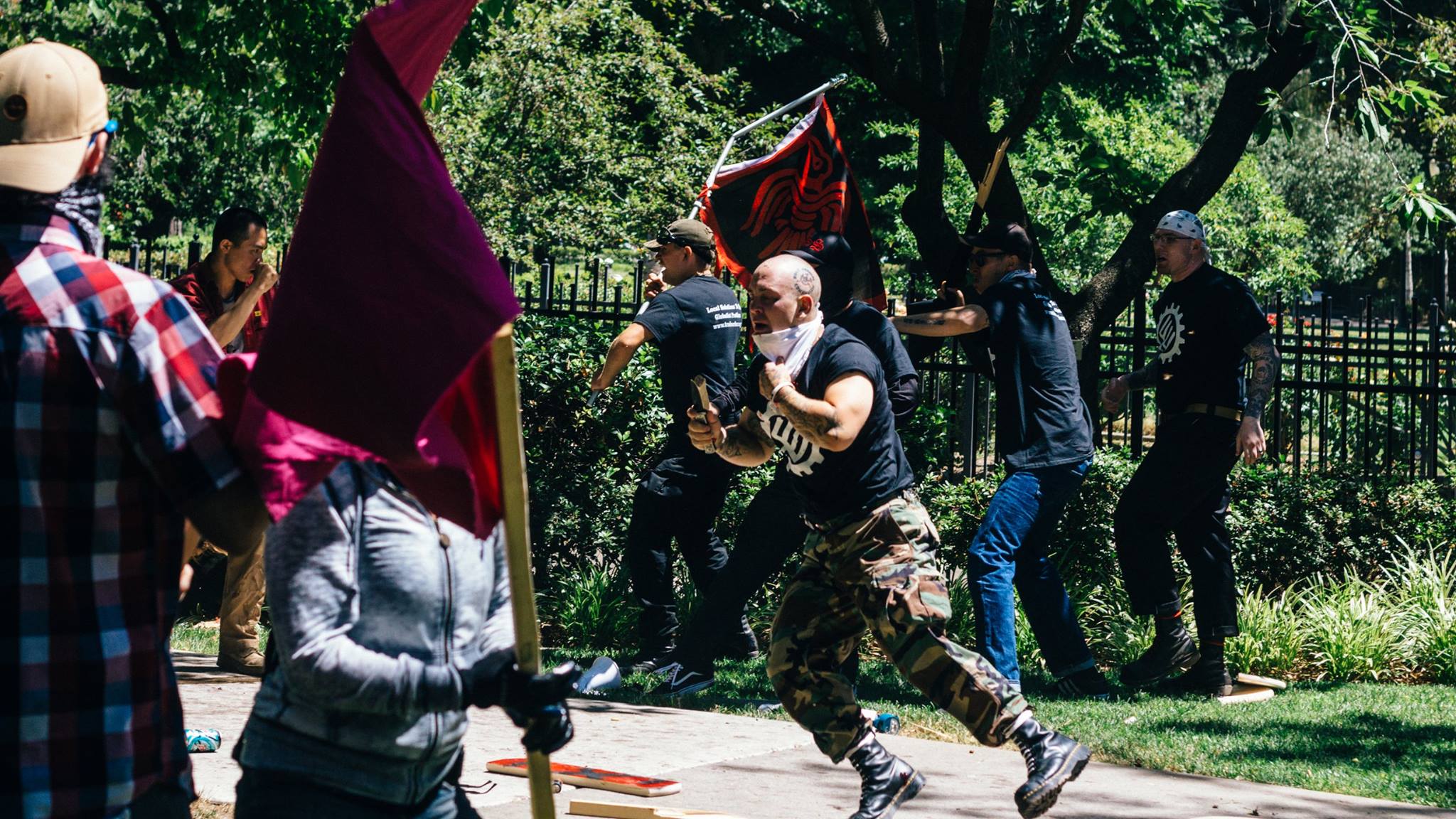 Nazi wielding knife clashes with protesters on south side of the Capitol.