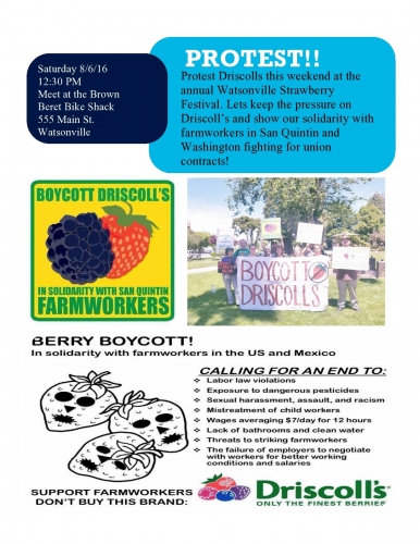 Protest Driscoll's this weekend at the annual Watsonville Strawberry Festival. Let's keep the pressure on Driscoll's and show our solidarity with farmworkers in San Quintín and Washington fighting for union contracts!