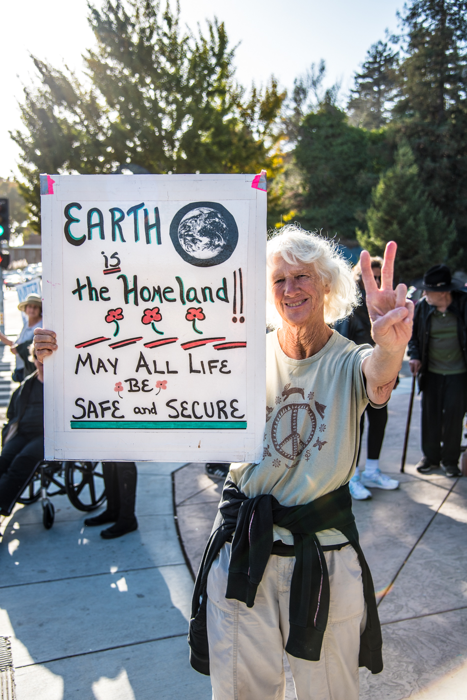The rally at the Town Clock, which was organized by the Earth Democracy committee of the Santa Cruz Women's International League for Peace and Freedom, brought together a large, energetic crowd. As rush hour traffic passed by, community members held signs inscribed with statements of solidarity with the Standing Rock Sioux Tribe, and others, such as: "Mni Wiconi - Water is Life," "People Over Pipelines," "Make America Native Again," "Protect the Soil - Stop the Oil," "Keep it in the Ground," and "Clean Water is A Right! No More Broken Promises!"
