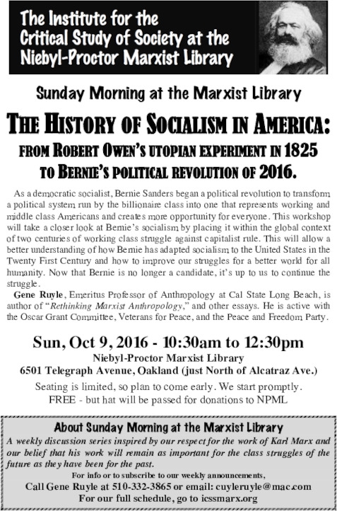 As a democratic socialist, Bernie Sanders began a political revolution to transform a political system run by the billionaire class into one that represents working and middle class Americans and creates more opportunity for everyone. This workshop will take a closer look at Bernie’s socialism by placing it within the global context of two centuries of working class struggle against capitalist rule. This will allow a better understanding of how Bernie has adapted socialism to the United States in the Twenty First Century and how to improve our struggles for a better world for all humanity. Now that Bernie is no longer a candidate, it’s up to us to continue the struggle.