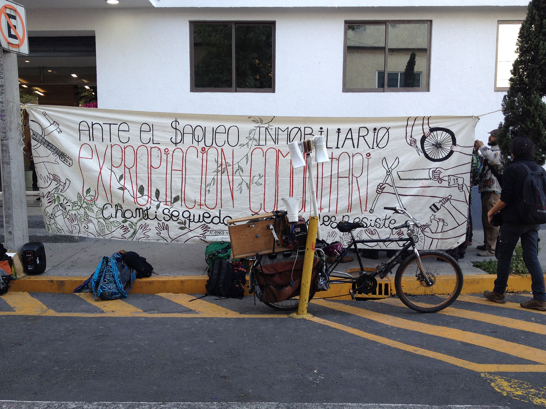 Mientras tanto, la comunidad CHANTI OLLIN, luego de ser liberada, permanece en las afueras del edificio en una Barricada Cultural, en donde desarrollan actividades artisticas abiertas al público, hermanados con organizaciones vecinas, autogestivas y comunitarias que sufren tambien el despojo de sus territorios, como es el caso de Pedregales de Coyoacán, quienes defienden uno de los ultimos Manantiales de la Ciudad, frente a la construcción de un megaedificio que contamina las aguas!