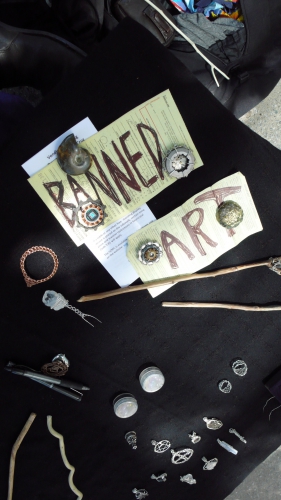 intended for collecting donations, (iii) personal belongings wholly contained underneath a table, no person may set down any item directly on the sidewalk or street in an exempt zone.