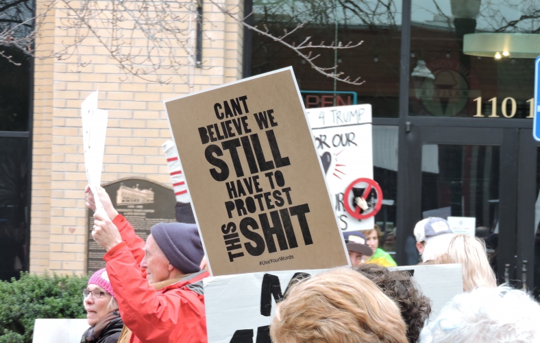 J21 Women's march ending at Louden Nelson for a rally, food and networking. Thousands marched from City hall through downtown meeting at the community center/park.