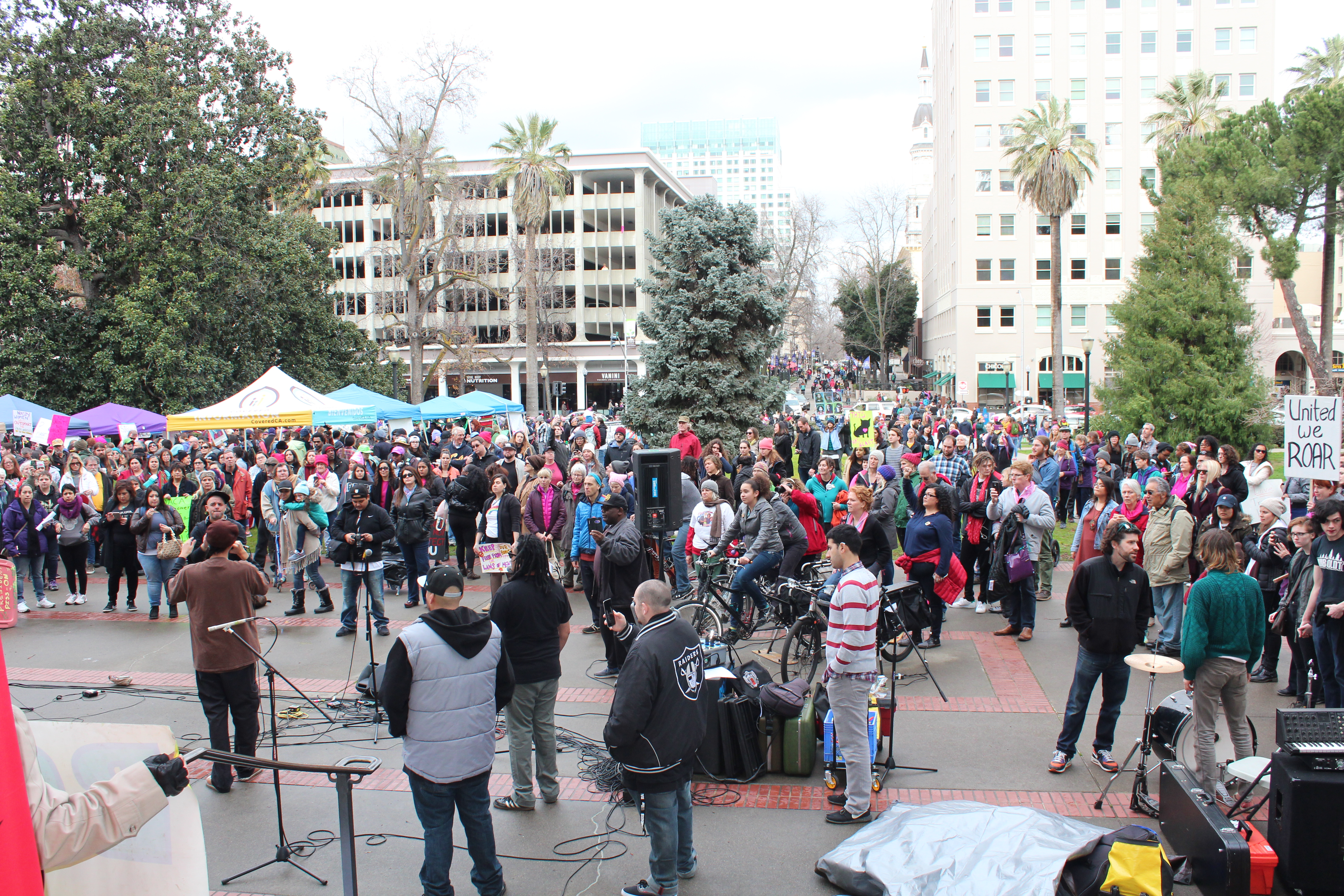 Musicians performing at the rally included Raging Grannies, Veins to Wires, Cresca Band, Steven Payan and Mentes Diferentes, Bicicletas por la Paz, and the Sacramento Labor Chorus.