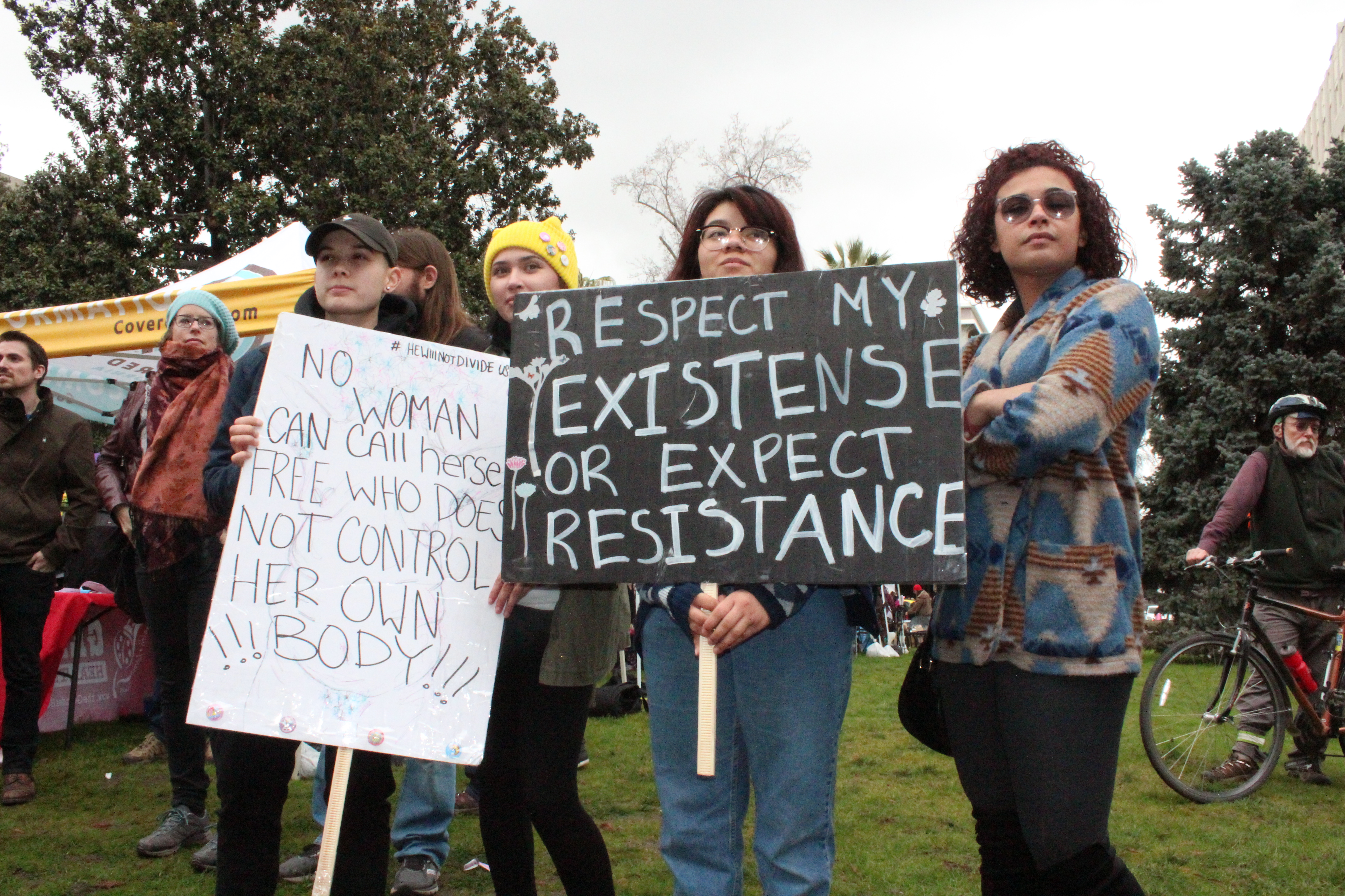 Board members of Women Take Back the Night — Tina Marie, Maryanne, Dianna, Sunny, and Jen — spoke on continuing violence against women across the nation that threatens to get only worse under the Trump administration.