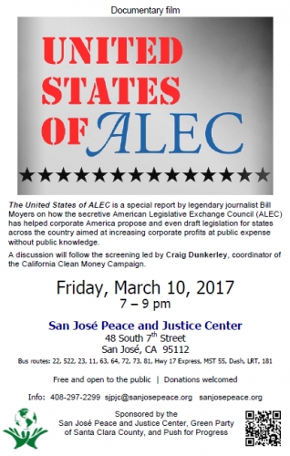 Sponsored by the San José Peace and Justice Center, Green Party of Santa Clara County, and Push for Progress