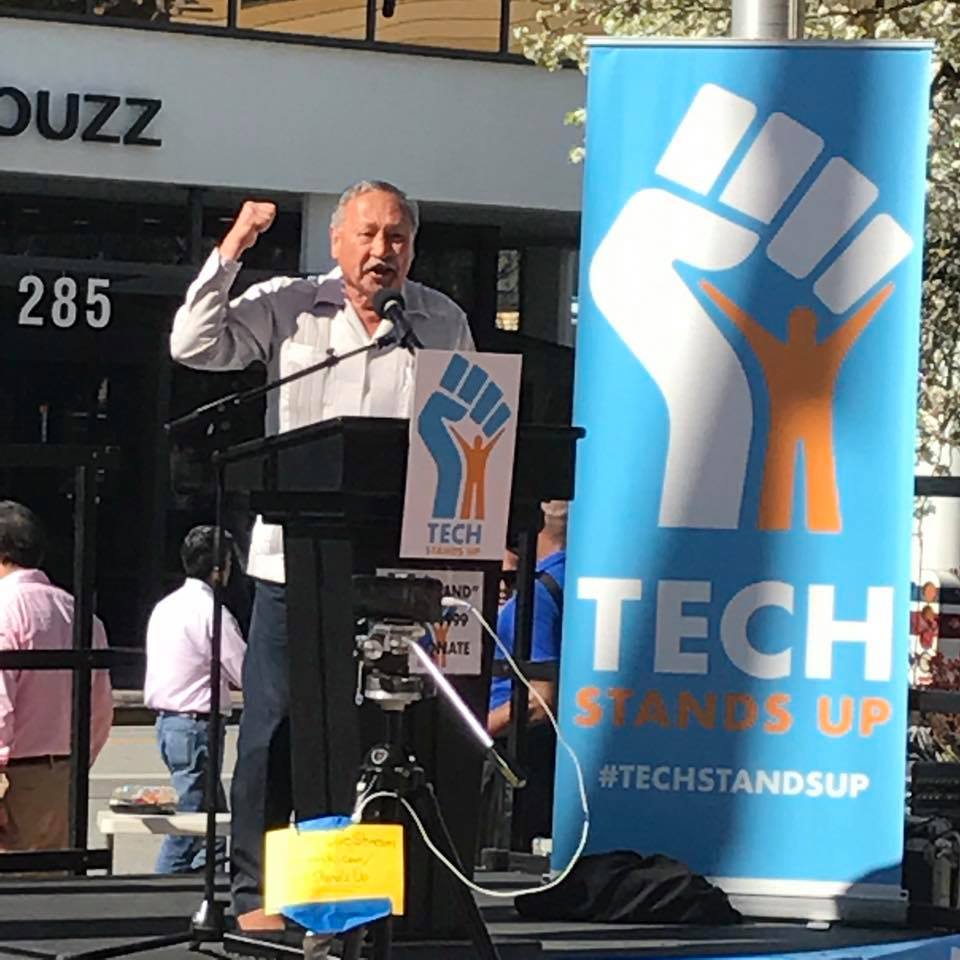 Today, in partnership, left wing activists and tech employees staged an alliance against White House policies. Tech Stands Up organized a rally in Palo Alto attended by hundreds of people.
