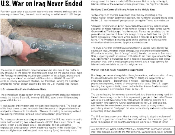 This week's vigil subject: U.S. War on Iraq Never Ended
