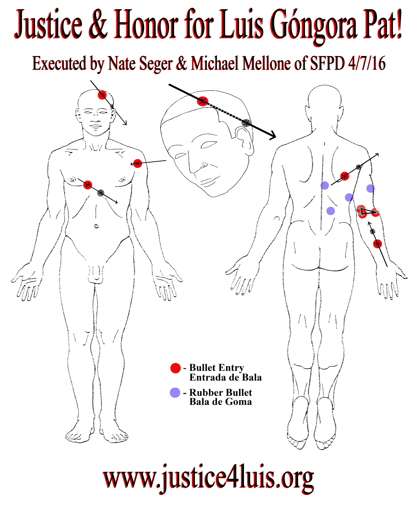 Autopsy Diagram of Luís Góngora Pat, Killed by SFPD on April 7, 2016
