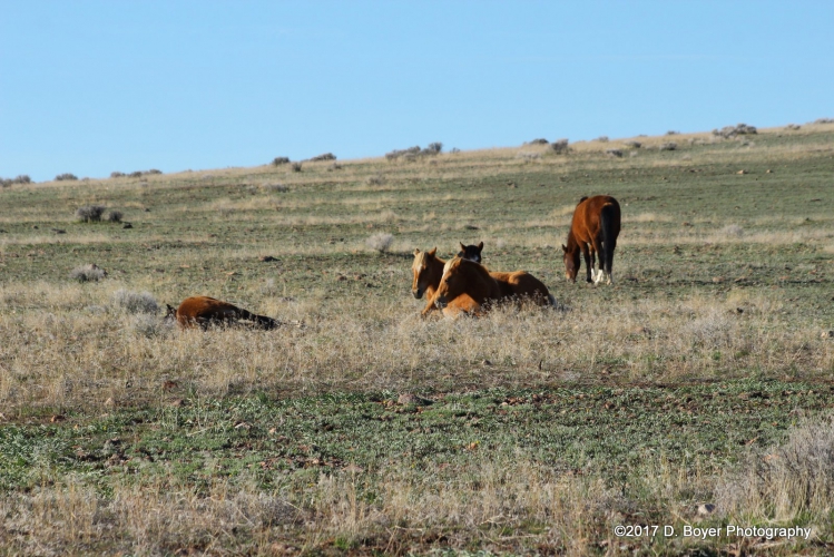 Somehow last year I became aware of that herd, so I visited them. My first visit to see that herd was incredible. I’ll never forget my first visit. No one can see the Fish Spring’s herd unless you have a 4x4 or an ATV, or a helicopter or plane. The road into the range to see them is full of boulders or rocks the size of watermelons. It is never easy to go out and see that herd in action, but once you figure out how to deal with those off-road conditions you’ll be amazed at what you can observe. My first visit I photographed new life on the range and death on the range. I saw horses happy in their family units and I saw wild horses grieve over the loss of their bandmate.