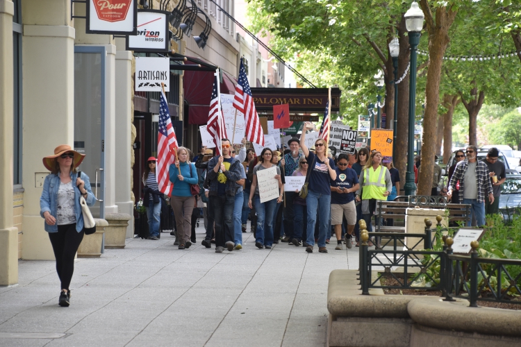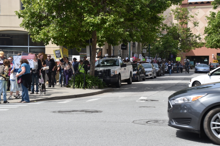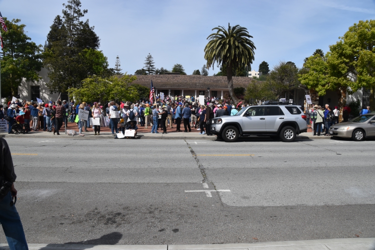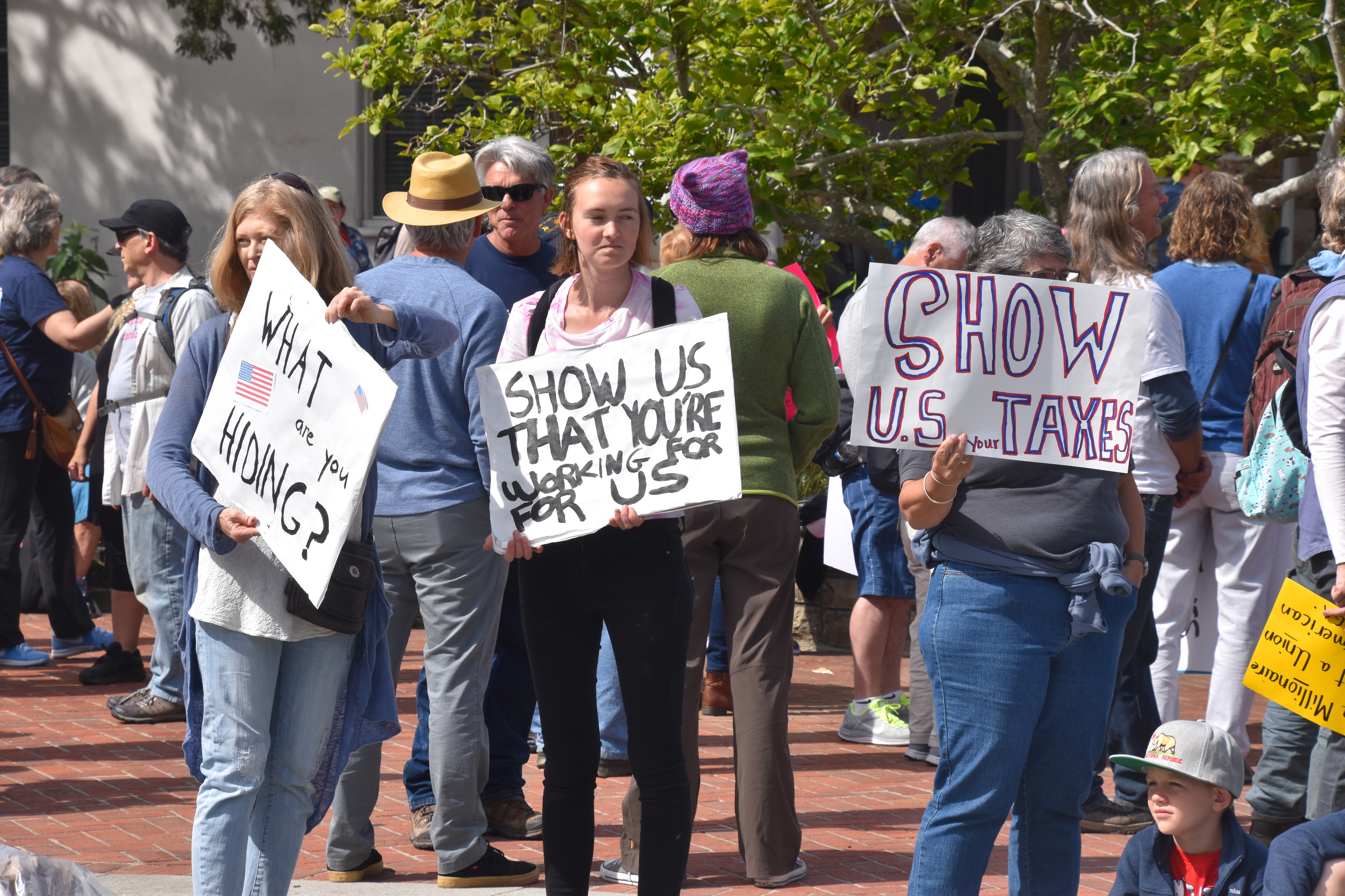 On a beautiful day in Santa Cruz, some 1200+ people took part in a march demanding that Donald Trump release his tax returns! Many other cities are also having marches. Though Donald promised to release his tax returns if he became president, he has not released them! The march began at city hall, went downtown, and ended at San Lorenzo Park.