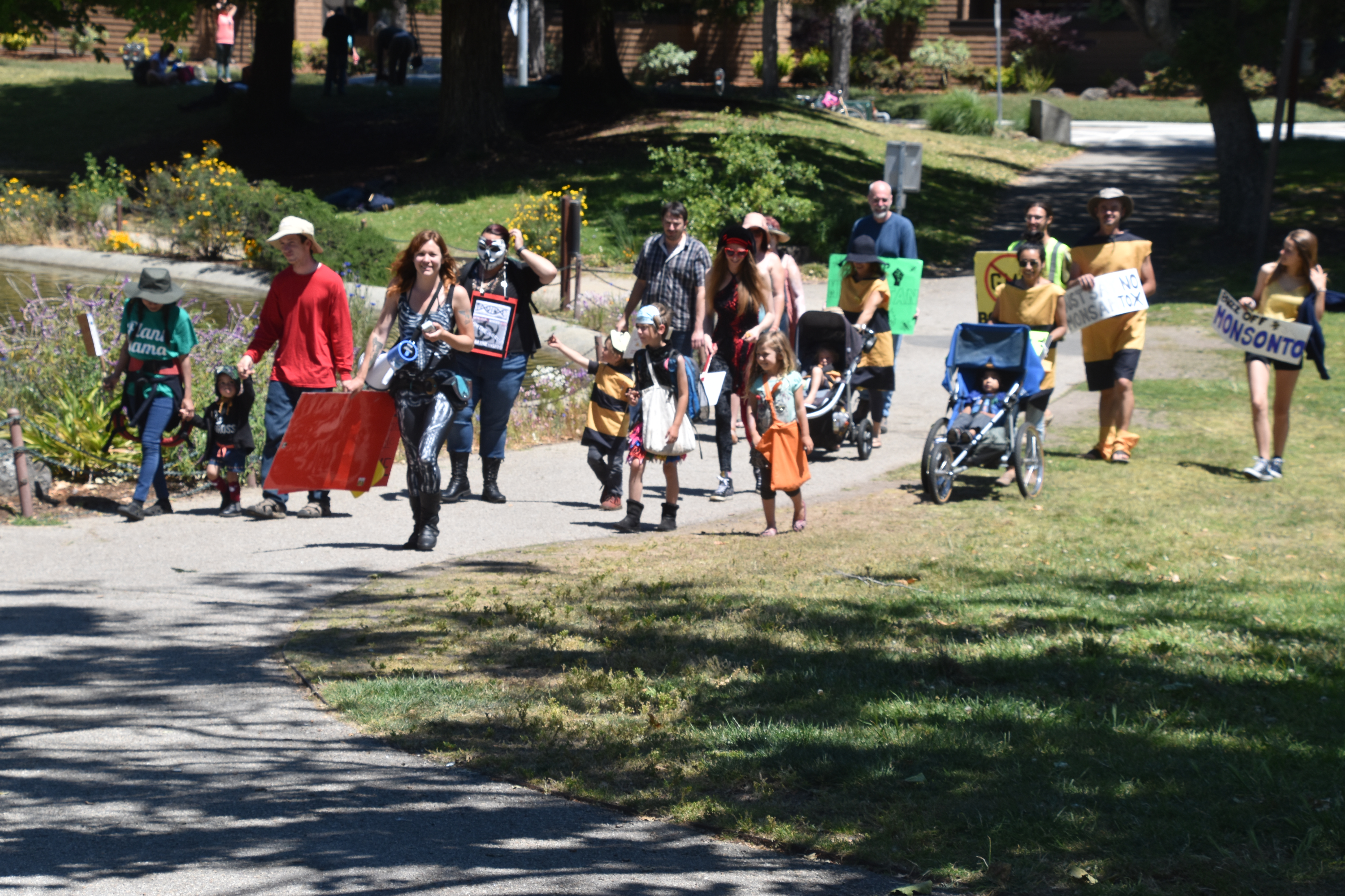 Photos are from before the march. Some twenty, or more, people started out from the park. The turn out was light, not near as people many as took part last year. Many other things happening in Santa Cruz today! The March coincides with many marches held around the world against Monsanto! Frustrated, I left the march as they were leaving the park, due to my camera failing,