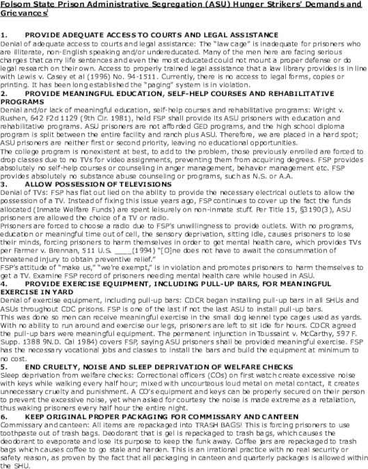 Call and email to SUPPORT HUNGER STRIKERS at Old Folsom State Prison