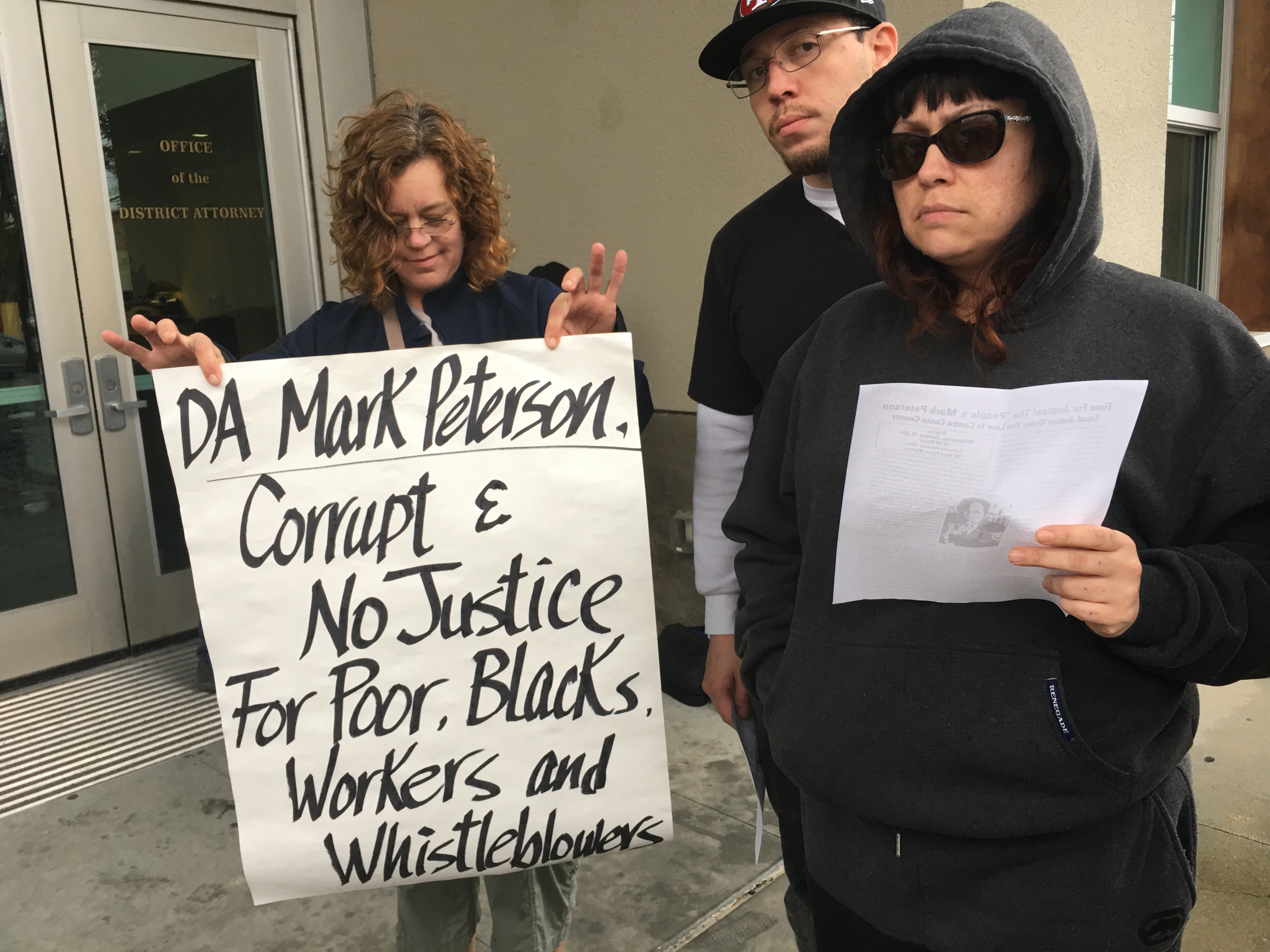 Contra Costa District Attorney Mark Peterson also has a long record of obstruction of justice, corruption and workplace bullying. He covered up the Pedie police murder in Richmond and was in collusion with the Richmond Police Department in sending away the victim and witness to Florida.