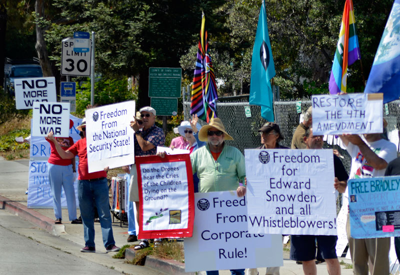 Join local patriots in the spirit of Chelsea Manning and Edward Snowden to call for Freedom for All Political Prisoners and Freedom from War, the National Security State, Corporate Rule, Drone Strikes, Torture, Monsanto, Nuclear Weapons and Power, Austerity Economics, Cell Tower Radiation, Police Militarization and Violence, Occupation, and much more.