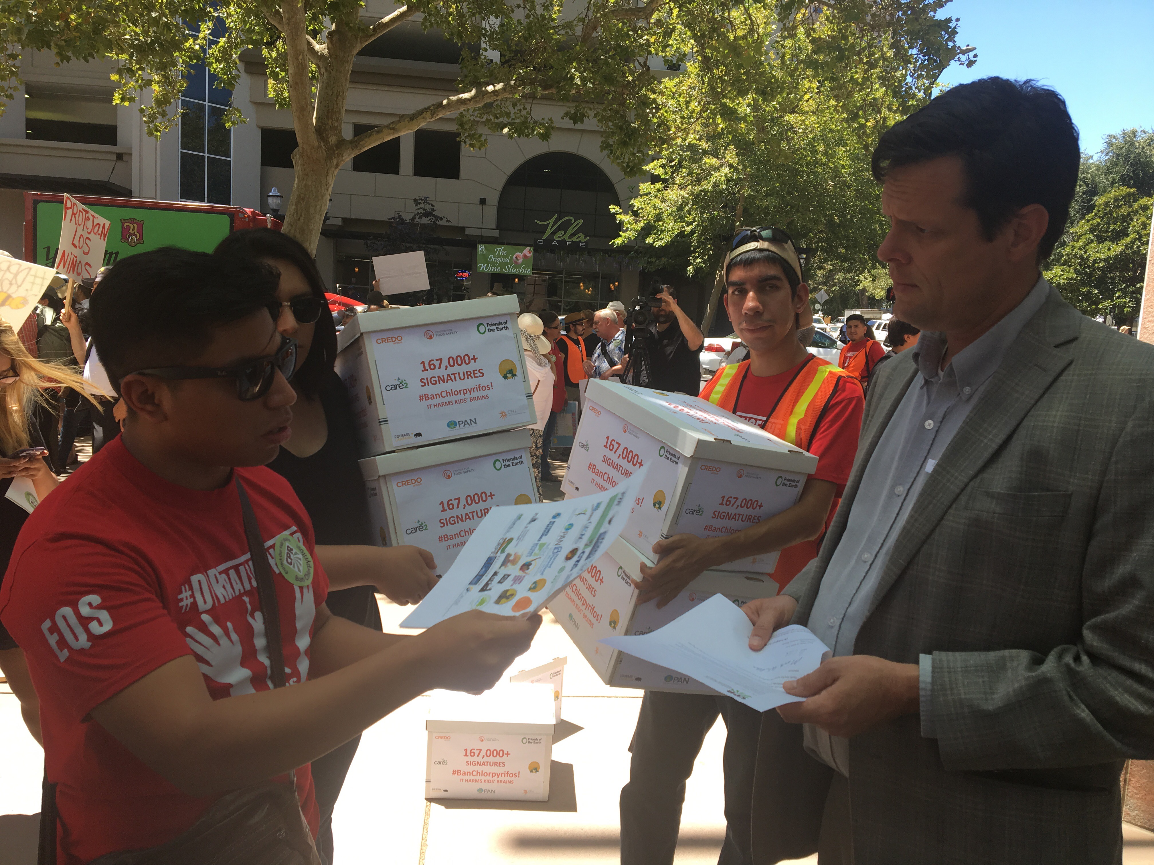 Following the rally, a delegation delivered more than 167,000 petition signatures along with a letter signed by 75 organizations representing hundreds of thousands of Californians. The petition was run by Care2, Center for Biological Diversity, Center for Environmental Health, Center for Food Safety, Courage Campaign, CREDO, Friends of the Earth, and Pesticide Action Network.