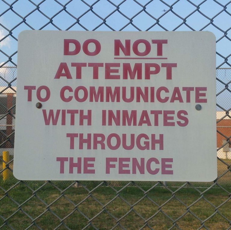 After people clamored forward, creating a rowdy cacophony with pots, pans, air horns, and bells, the front line of the demo turned it’s energy on the fence itself, shaking the outer fence and eventually removing some of the clasps that adhere the fence to the fence poles. A few attempts were made at shaking the poles but the concrete anchoring them to ground rendered them immovable. Several people took advantage of the gap under the fence, crawling underneath it, scaling the second fence and shouting to inmates, before climbing down and scurrying back under the fence to avoid arrest.