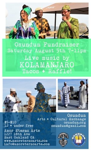 Celebrating the beauty of diversity, Osundun is fundraising for their annual Oakland festival. Live music by Kolamanjaro, tacos and raffle!