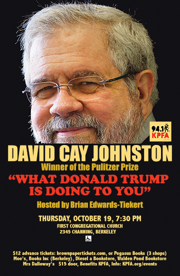 Pulitzer Prize-winning investigative reporter Donald Cay Johnston follows his recent New York Times' bestseller, "The Making of Donald Trump," with a blistering talk - "What Donald Trump is Doing To You."