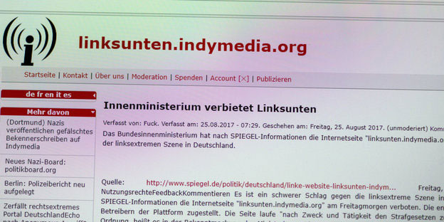 Update 01:28pm (CET): Federal interior minister Thomas de Mazière told reporters that linksunten.indymedia.org is banned and the people behind it are considered to be members of a terrorist association.