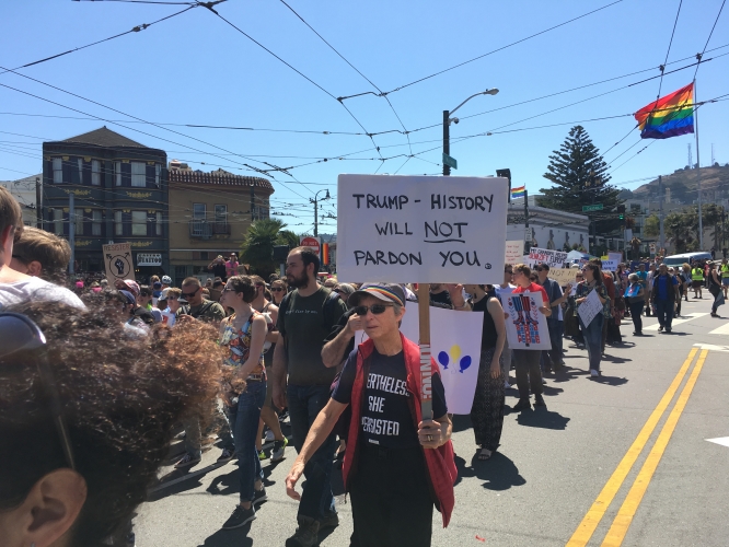 Thousands of San Franciscan joined together to protest Trump, nazis and racists in San Franicsco and nationally. Included were trade unionists