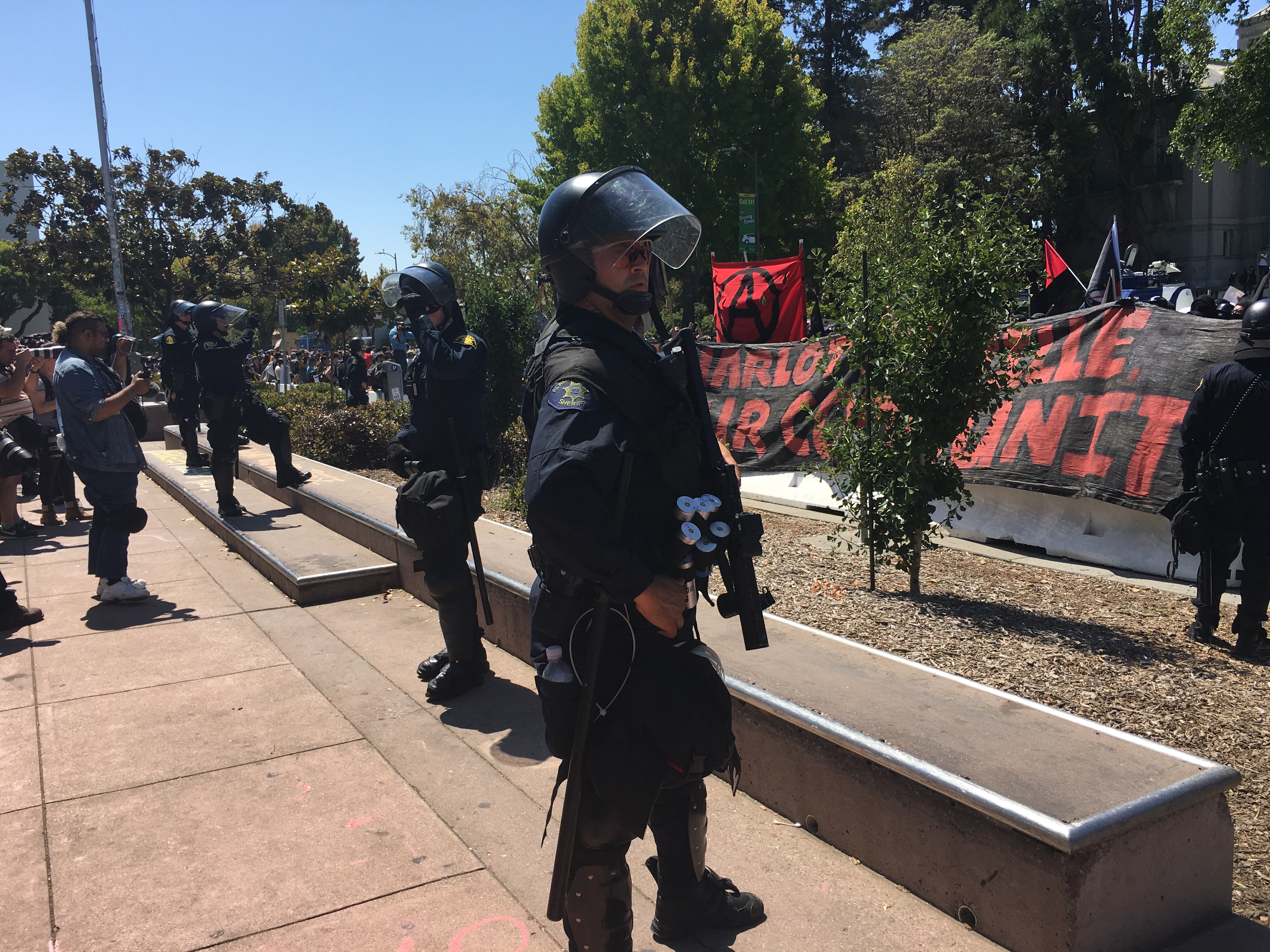 Thousands of anti-fascists and opponents of Trump went to Berkeley civic center park on August 27, 2017 to oppose the growing racism, xenophobia, sexism and attacks on Muslims and women and workers. A planned rally against “Marxism” had been canceled and the park was taken over and control by the police by a large number anti-fascists.