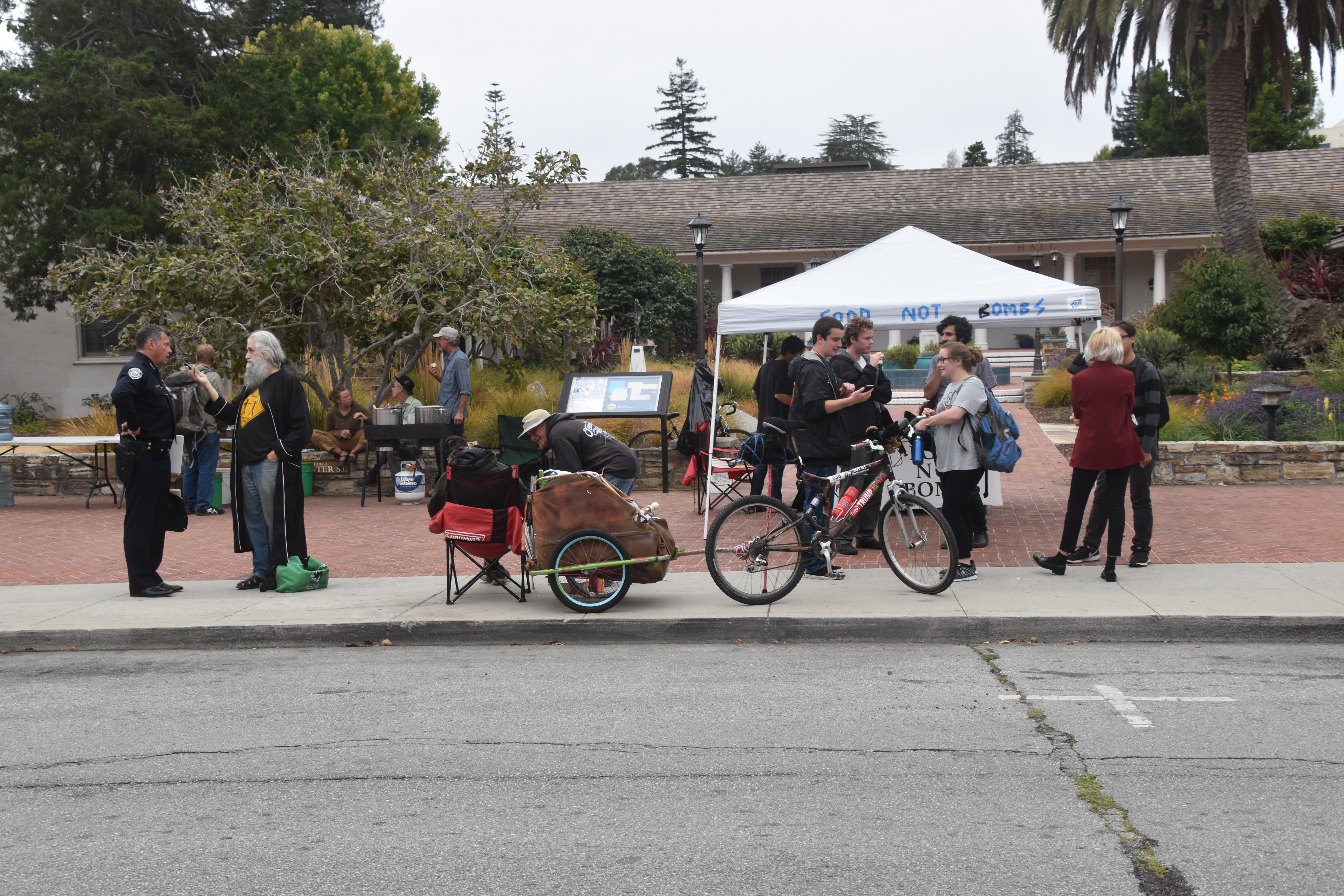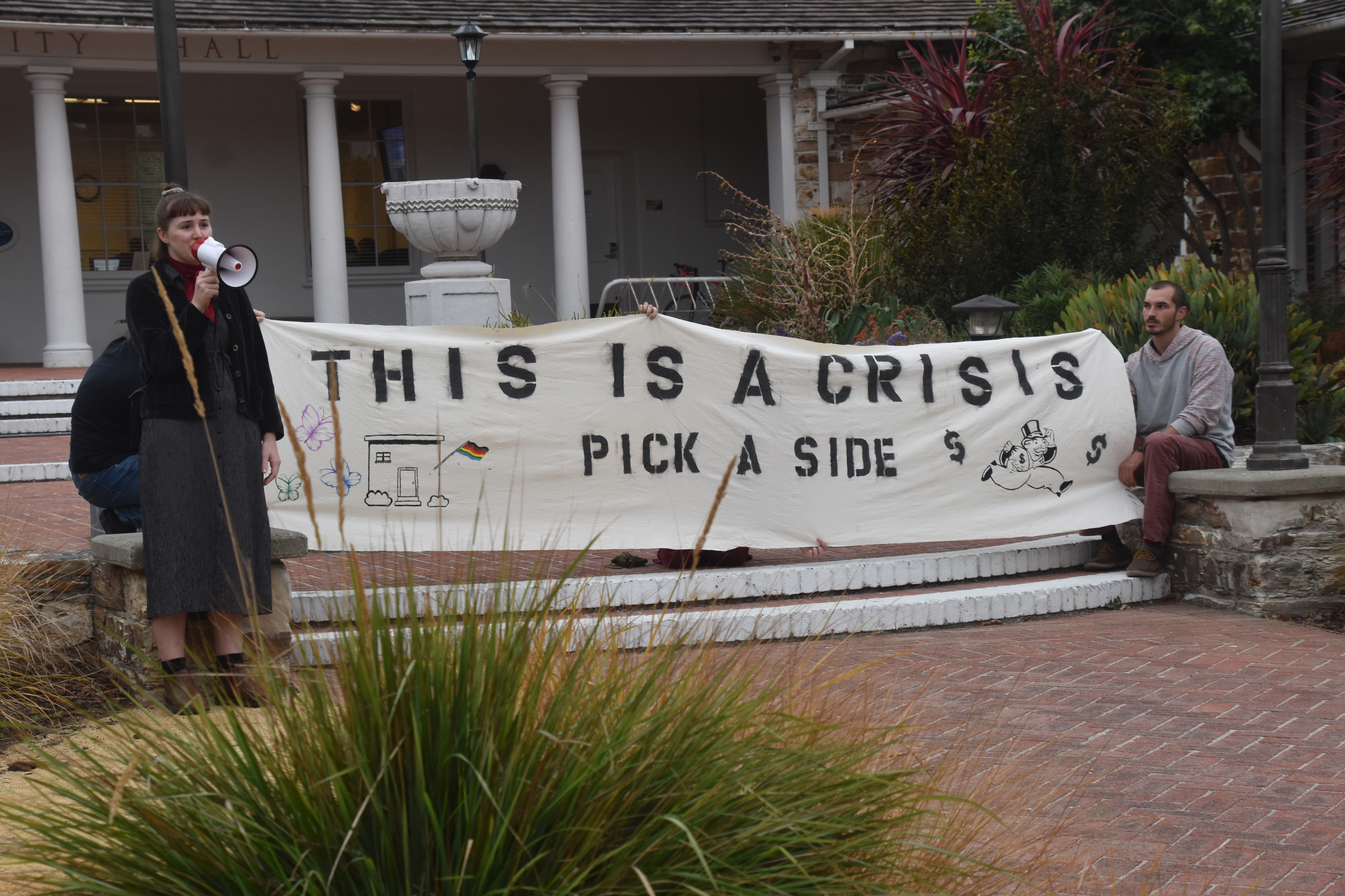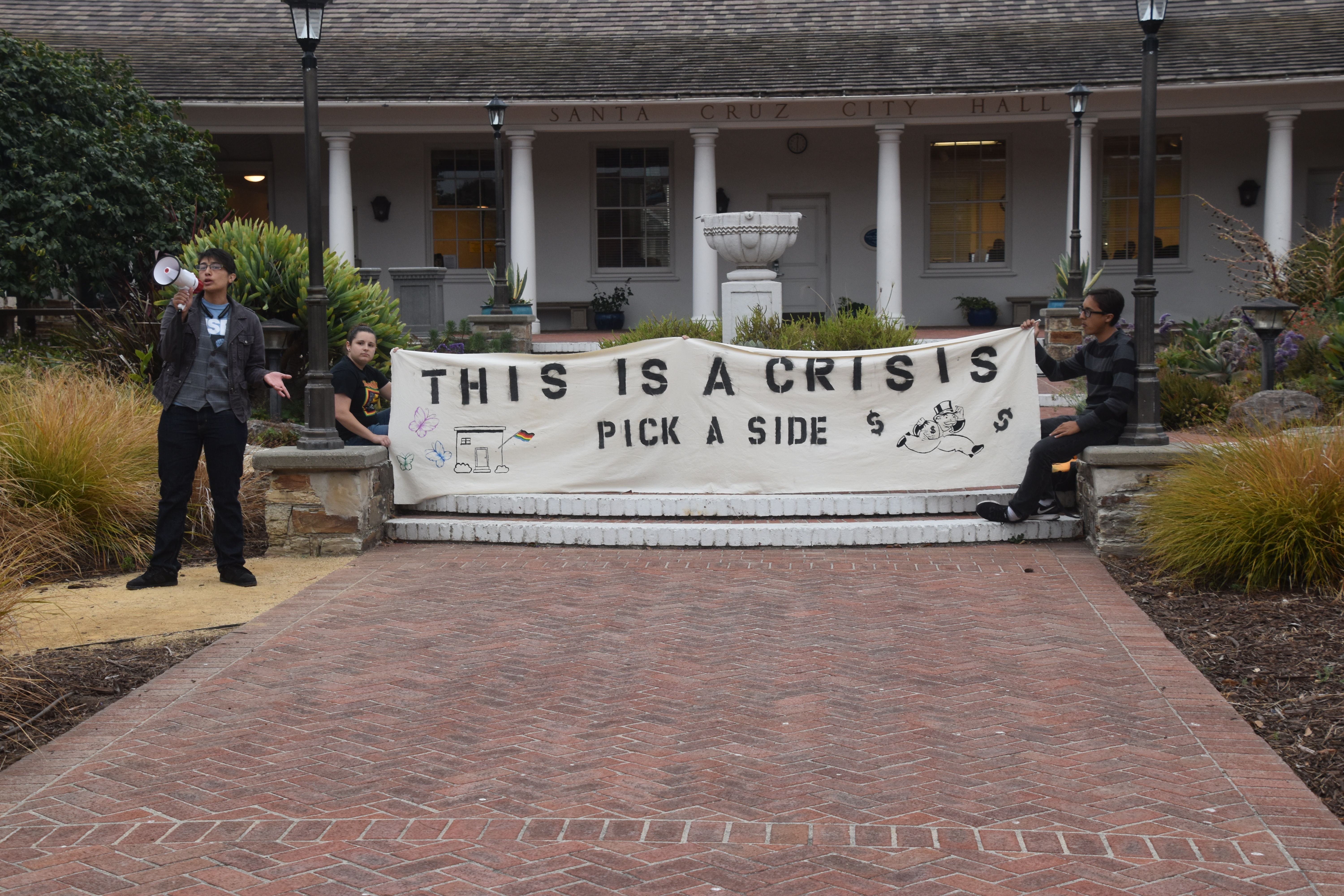 Tenants Fight Back held a rally in front of City Hall on Tuesday September 12, 2017. They gathered and spoke to make clear the need for residents of Santa Cruz to pick a side in the housing crisis: people or profit. As this rally went on, the council approved a new development on Pacific with no affordable housing units. Seems like the city council has picked a side. Tenants will continue to fight.