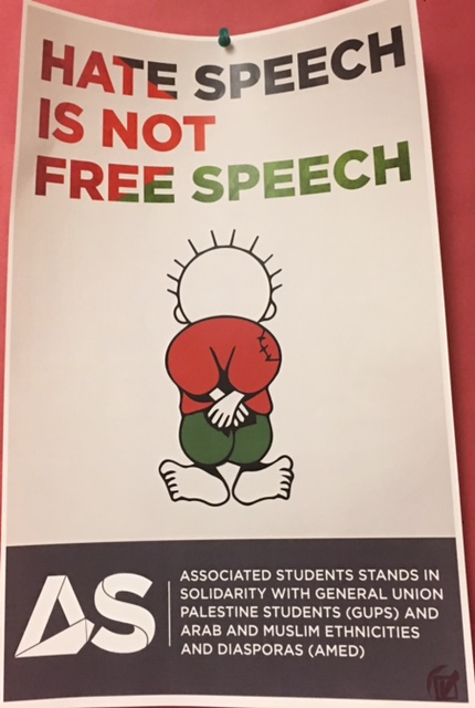 Whereas other posters targeted students who were organizing a forum on Palestine and by implication suggested they were collaborating with terrorists and anti-Semitic; and
