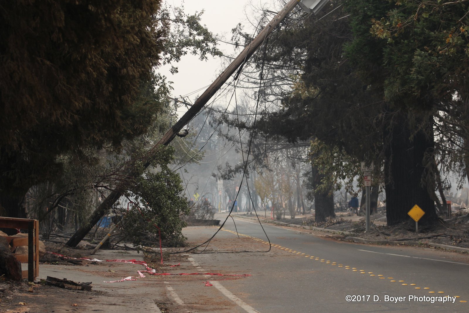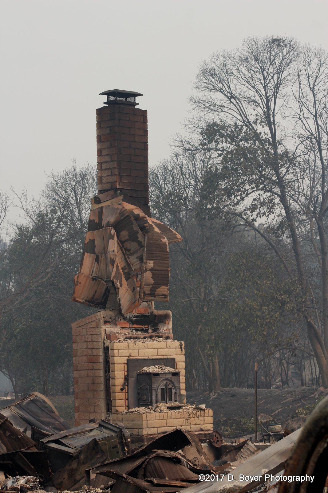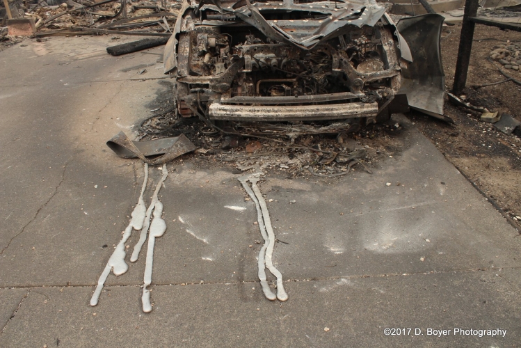 It seems preliminarily the fires were started when electrical lines arced or were fallen due to the heavy winds. Residents effected by the fires reported hearing the winds between the hours of 10pm and into the next morning. The Diablo winds "is a name that has been occasionally used for the hot, dry offshore wind from the northeast that typically occurs in the San Francisco Bay Area of Northern California, during the spring and fall." It has been attributed to the cause of the Oakland Hills Fire in 1991. The winds themselves don't cause the fires, but power lines unable to handle the extreme weather blow around and arc, or the poles sometimes fall igniting the first flame. During my walk around of the effected areas I notice that aluminum melted liquefied and then hardened again. Plastic had melted and burned. Cement burned. Plus many other materials that could cause the air to become toxic to breathe.