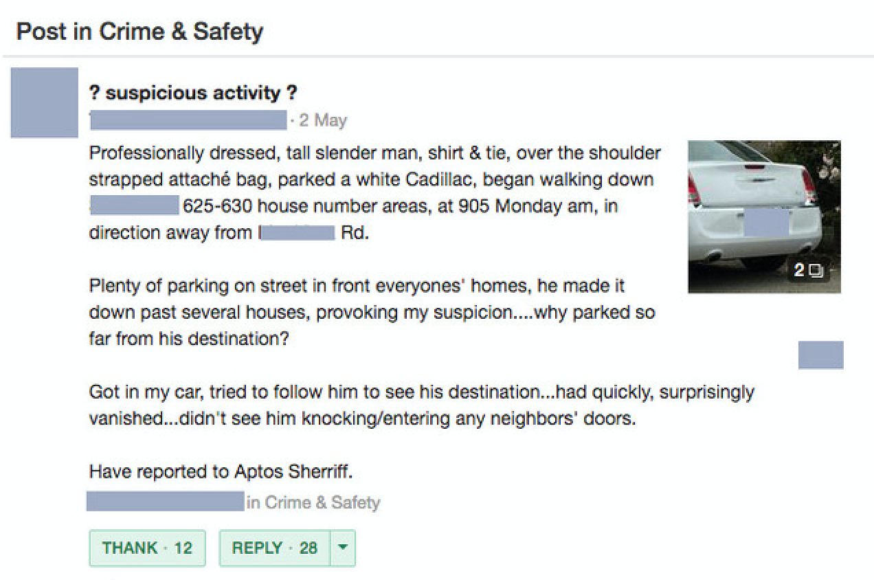 NextDoor provides just enough anonymity for white citizens to let their racism fly.