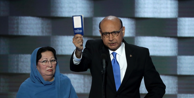 He spoke as the father of a Muslim US soldier killed in combat about what it means to dedicate your life to the promise of the American dream, inspiring a renewed patriotism and pride in the hearts of many Americans. His six-minute speech became a powerful cultural touchstone when he pulled a pocket-size copy of the Constitution out of his suit jacket and asked Donald Trump directly "Let me ask you: have you even read the United States Constitution? I will gladly lend you my copy."