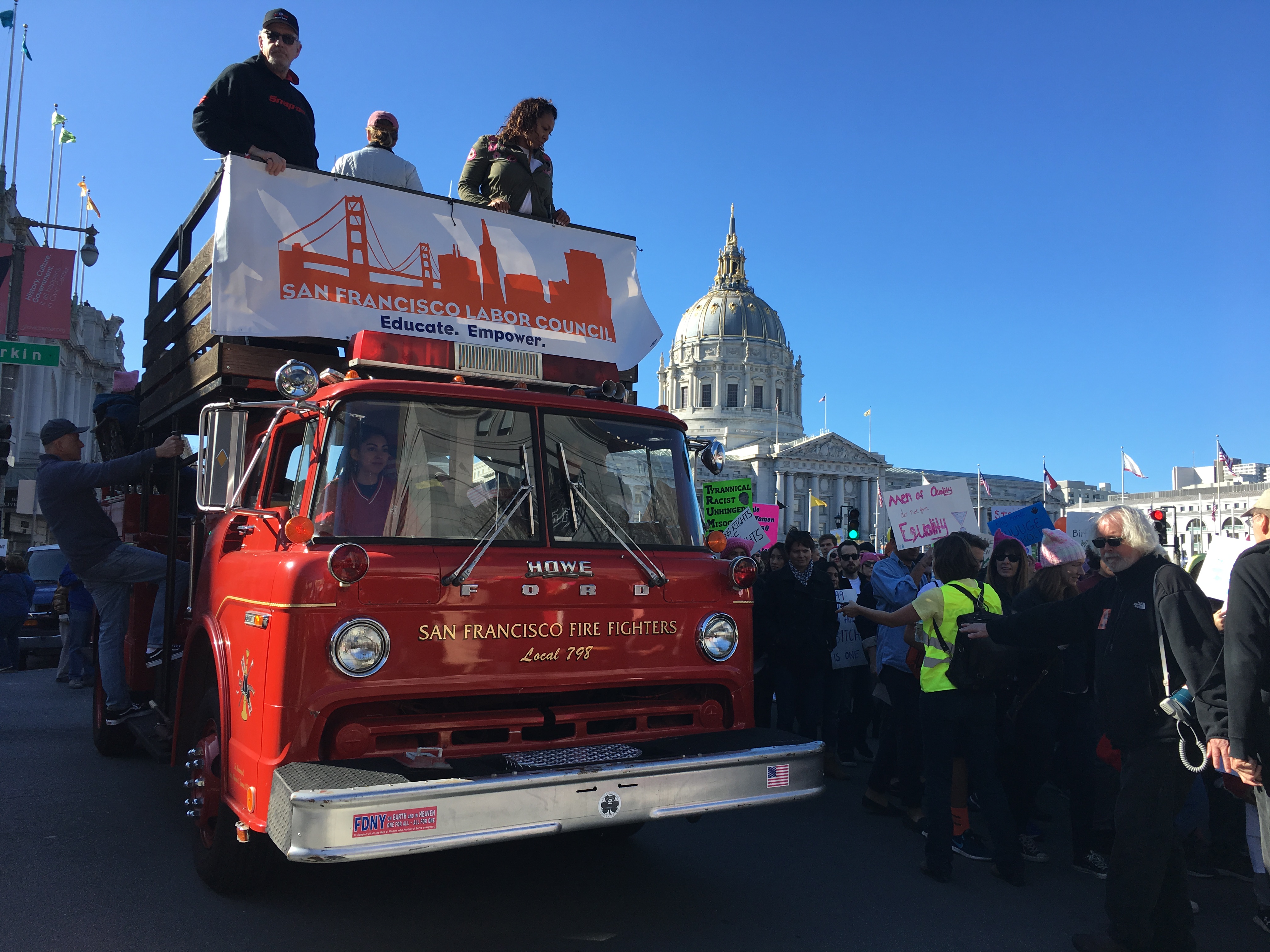 Tens of thousands rallied in San Francisco on January 20, 2018 to protest the attacks on women, immigrants, trade unionists, native Americans and the oppressed. Participants talked about the growing attacks on immigrants, veterans and public education. There is a growing anger against the attacks by the Trump administration on veterans, immigrant youth and women's rights.