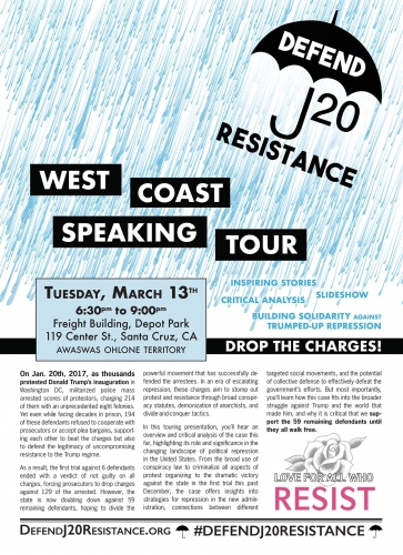 On January 20th, 2017 at the massive protests in Washington DC against Trump’s inauguration, militarized police attacked and mass-arrested over 200 protestors at an anti-fascist, anti-capitalist march, charging 214 of them with an unprecedented eight felonies. Yet even while facing decades in prison, 194 defendants refused to cooperate with prosecutors or accept plea bargains, supporting each other to beat the charges but also to defend the legitimacy of uncompromising resistance to the Trump regime. As a result, the first trial against 6 defendants ended with a verdict of not guilty on all charges, forcing prosecutors to drop charges against 129 of the arrested. However, the state is now doubling down against 59 remaining defendants, hoping to divide the powerful movement that has successfully defended the arrestees. In an era of escalating repression, these charges aim to stomp out protest and resistance through broad conspiracy statutes, demonization of anarchists, and divide-and-conquer tactics.