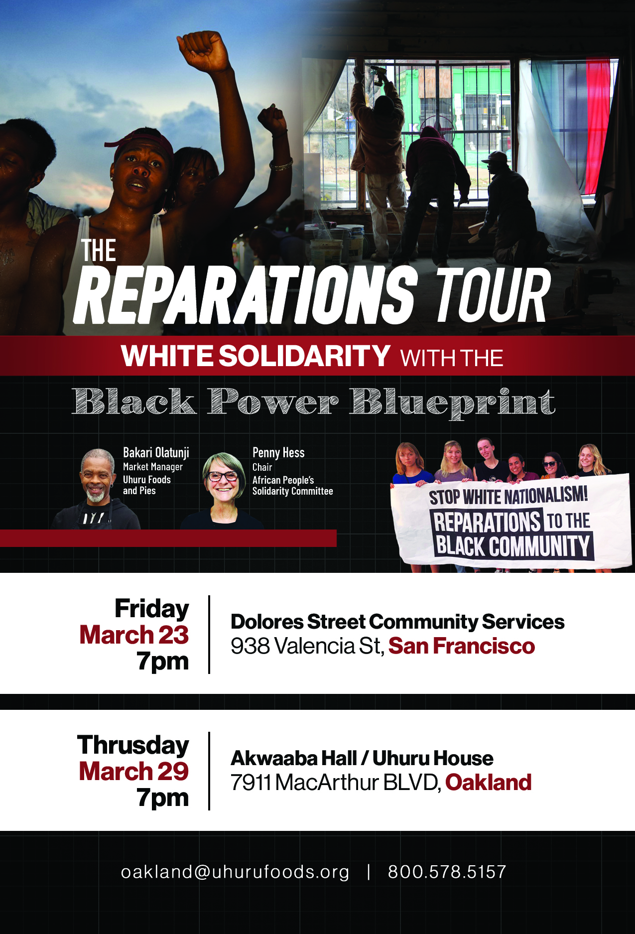 The Reparations Tour: White Solidarity with the Black Power Blueprint is part of a U.S. wide tour building support for the Black Power Blueprint Project, a program for economic and political power in the hands of the African working class of St. Louis in the wake of the mass resistance following the police murder of Mike Brown in 2014.