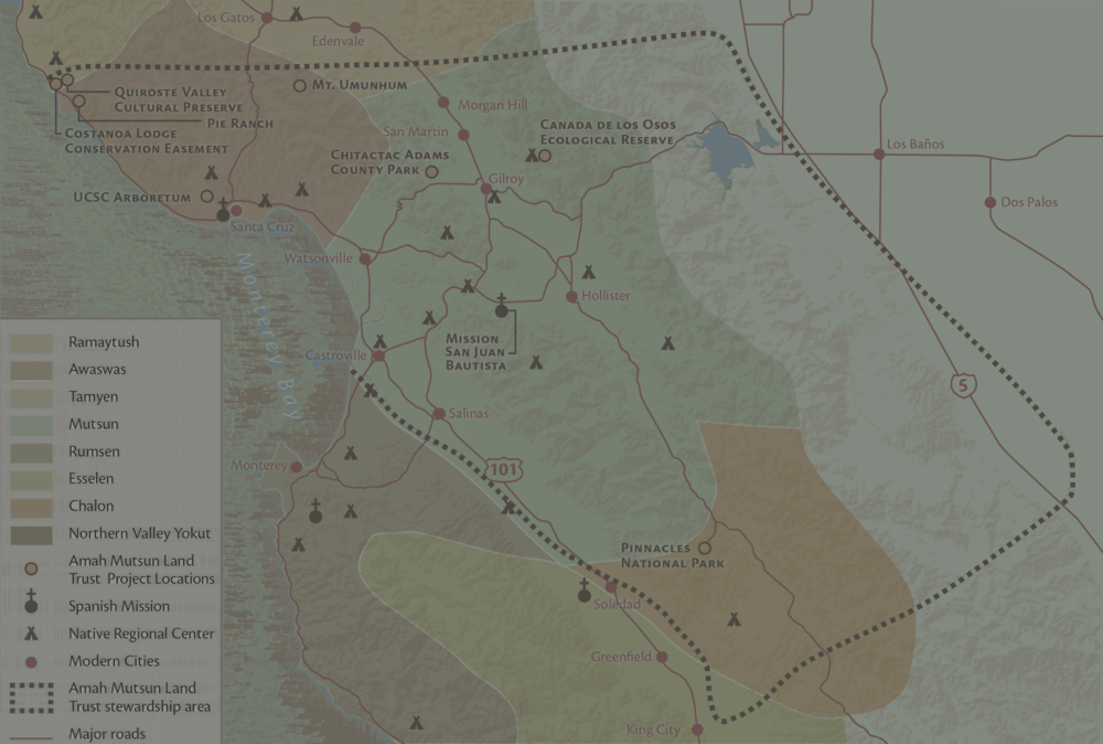 For thousands of years and hundreds of generations Bighead dance ceremonies conducted at Juristac were the most important spiritual ceremonies of the Mutsun People and, as a result, the gentle hills and lands of Juristac were considered and remain sacred landscapes for the tribe. Since the days when their sacred ceremonies were conducted in peace at Juristac, the Amah Mutsun Tribal Band experienced three different periods of brutal colonization; the Spanish/Mission period, the Mexican period and the American period. During these times, waves of successive colonizers sought to destroy and dominate the Mutsun people, their environments, spirituality and culture. Unfortunately, the destruction of Mutsun culture continues to this day. As Chairman Lopez explains, “The destruction and domination of our people never ended, it just evolved into the immoral laws and regulations that exist today. These laws allow governments to ignore Native American history, culture and spirituality. These laws allow our cultural and spiritual sites to be desecrated and monetized.” Today there are very few Amah Mutsun cultural sites remaining within the tribal territory and the Tribe is determined to do all it can to ensure Juristac, its most sacred site, is permanently protected.