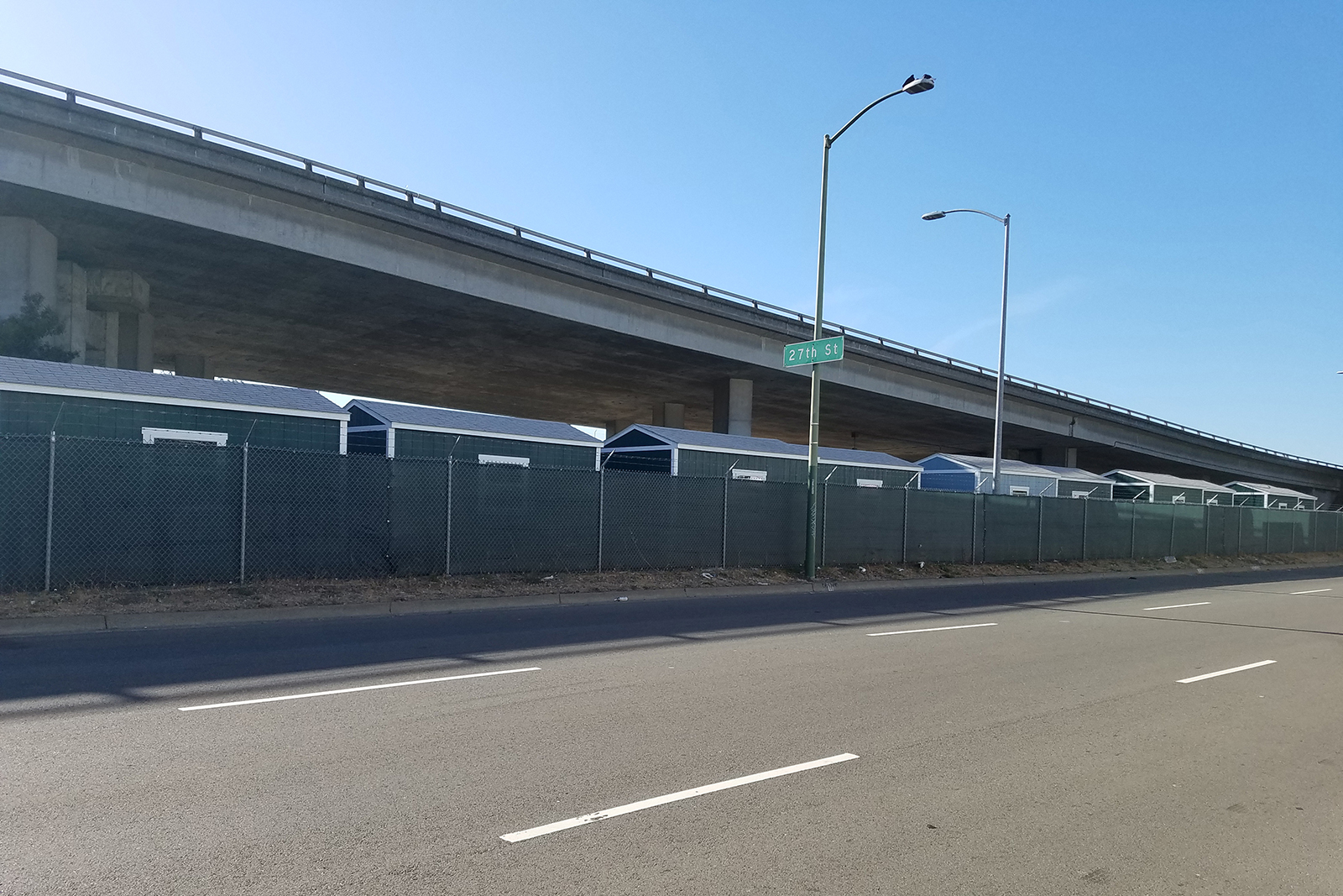 But now the city and a non-profit called Operation Dignity have set up Oakland's second sanctioned "outdoor navigation center" consisting of twenty Tuff Sheds in the parking lot underneath the I-980 freeway, intended as temporary housing for a relatively small number of houseless folks. Given the numbers of people who have found themselves living in the Oakland streets during Libby Schaaf's reign as mayor, and particularly at this one encampment, it is far from enough.