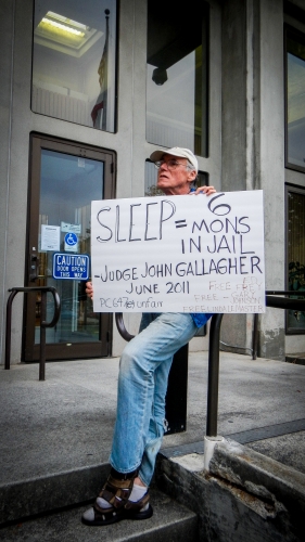 On a number of occaisions with the Freedom Sleepers, David camped out all night at Santa Cruz City Hall to protest the local sleeping ban, which criminalizes the act of sleeping outdoors at night in public places. During that time period he intiated a fast to also oppose the sleeping ban.