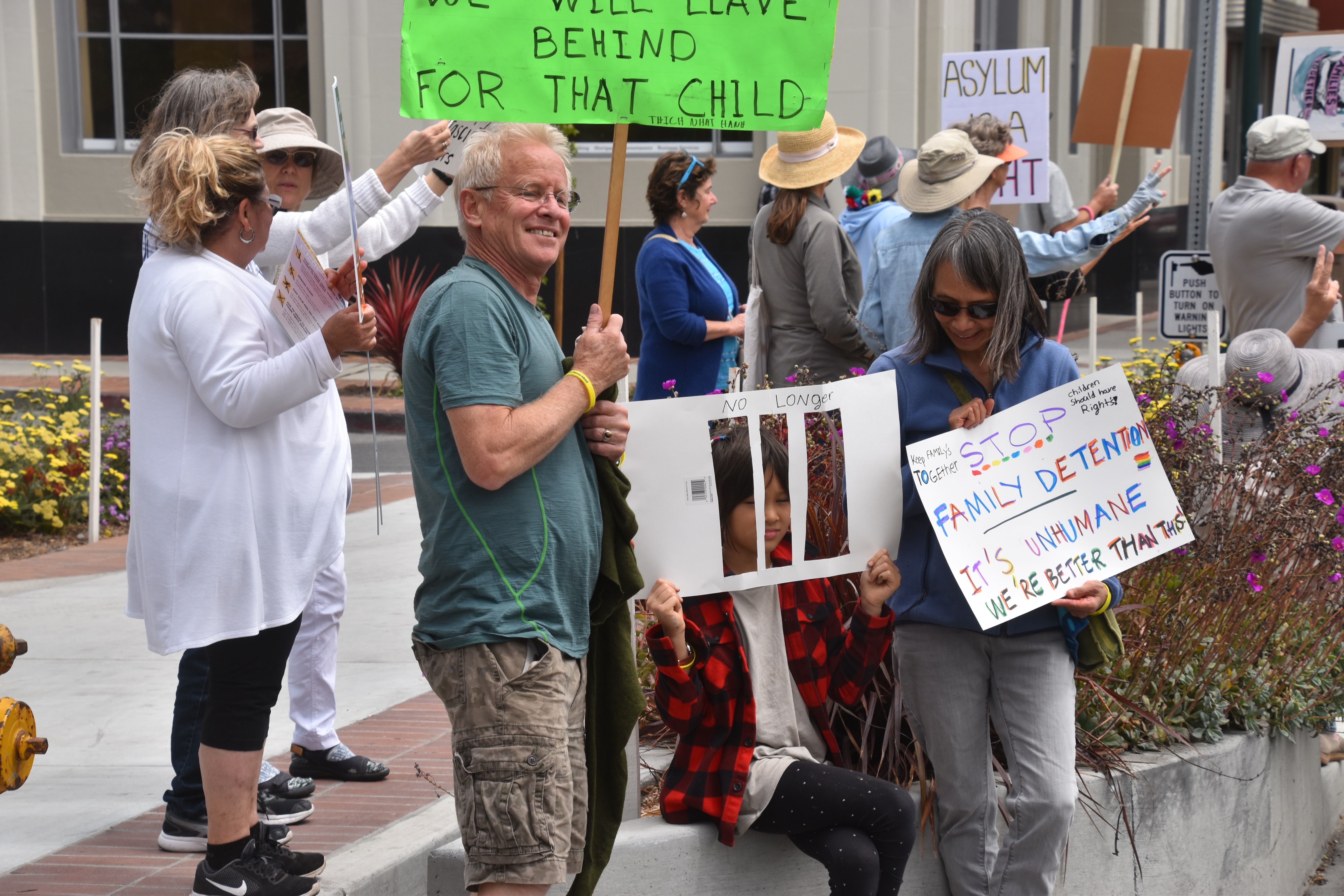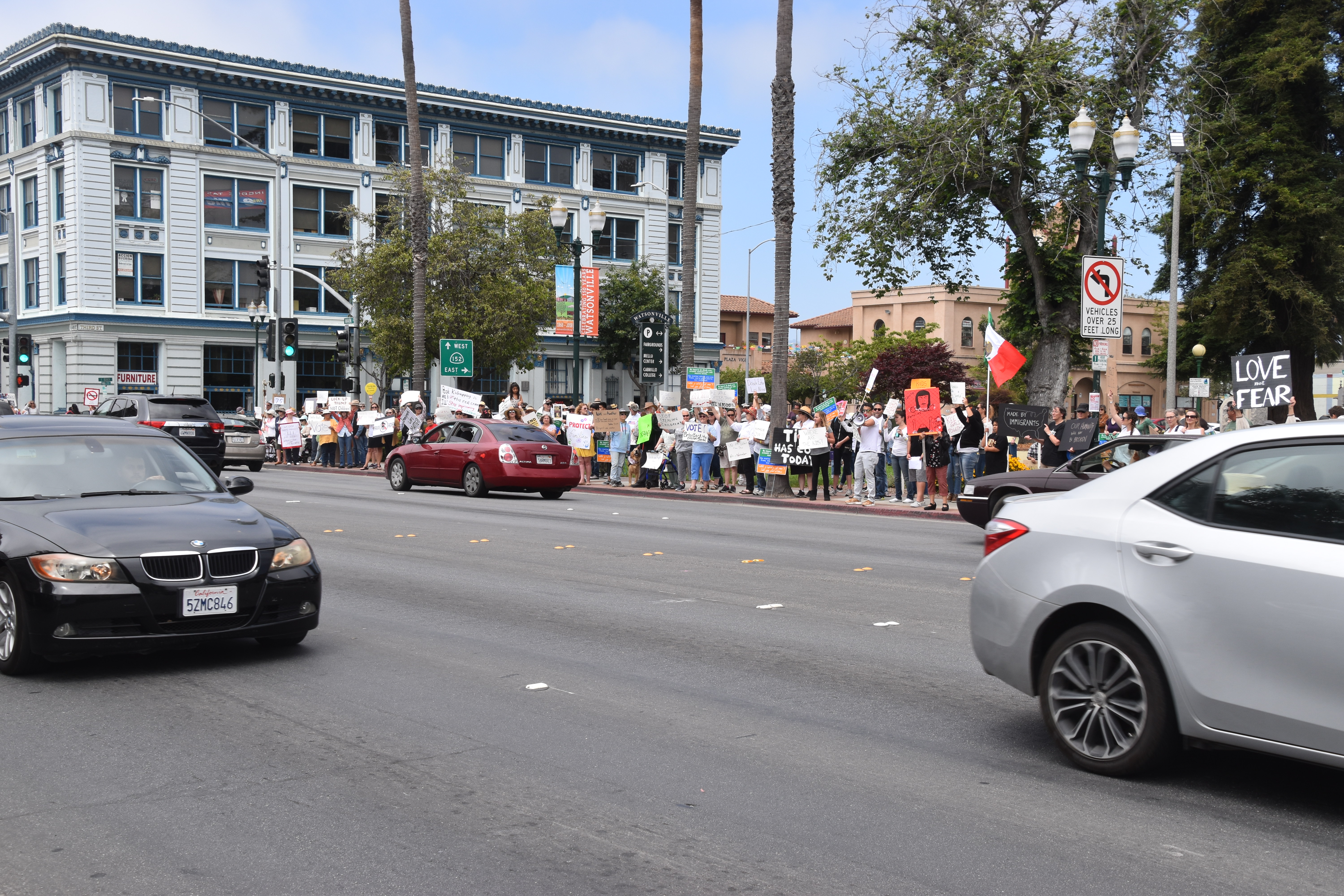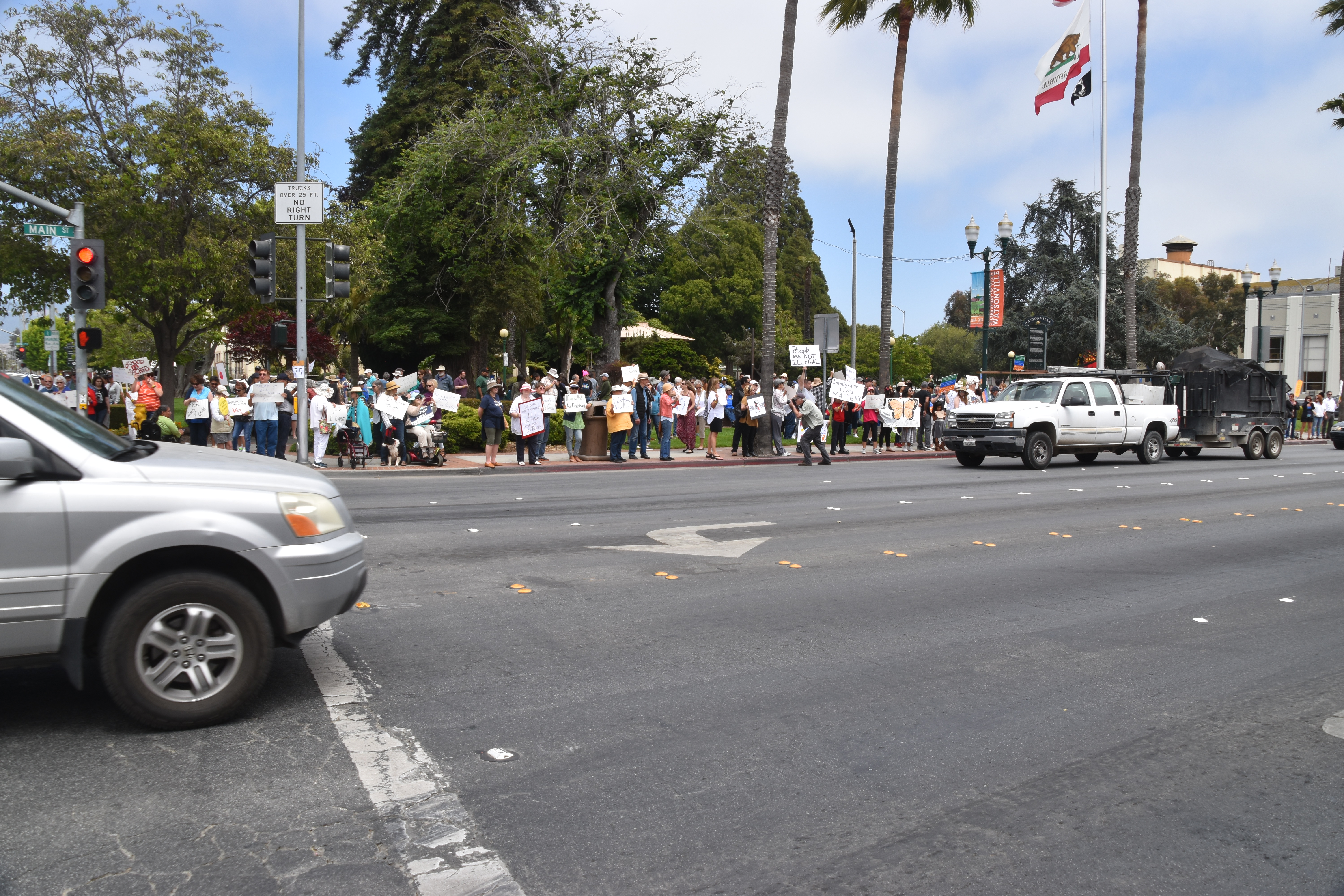 'Families Belong Together' Now in Watsonville. After leaving Santa Cruz, also arriving early to the event, though the event did not start until 2 PM. Here is what is what it looked like when I arived at a bit before 1PM. Again many more people arrived by 2PM. There were not near as many people here in Watsonville, as there was in Santa Cruz! I believe that with events also in Santa Cruz and Monterey a lot of folks went to the others nearby towns! ( I must say, there were a lot of people that attended multiple events). The almost continious sound of the honking of horns, chanting, and yelling filled the air. I left at a little after 3PM. It's getting late, after a long day! I am so glad that so many concerned people, children, and some dogs! I hope you enjoy the pictures.